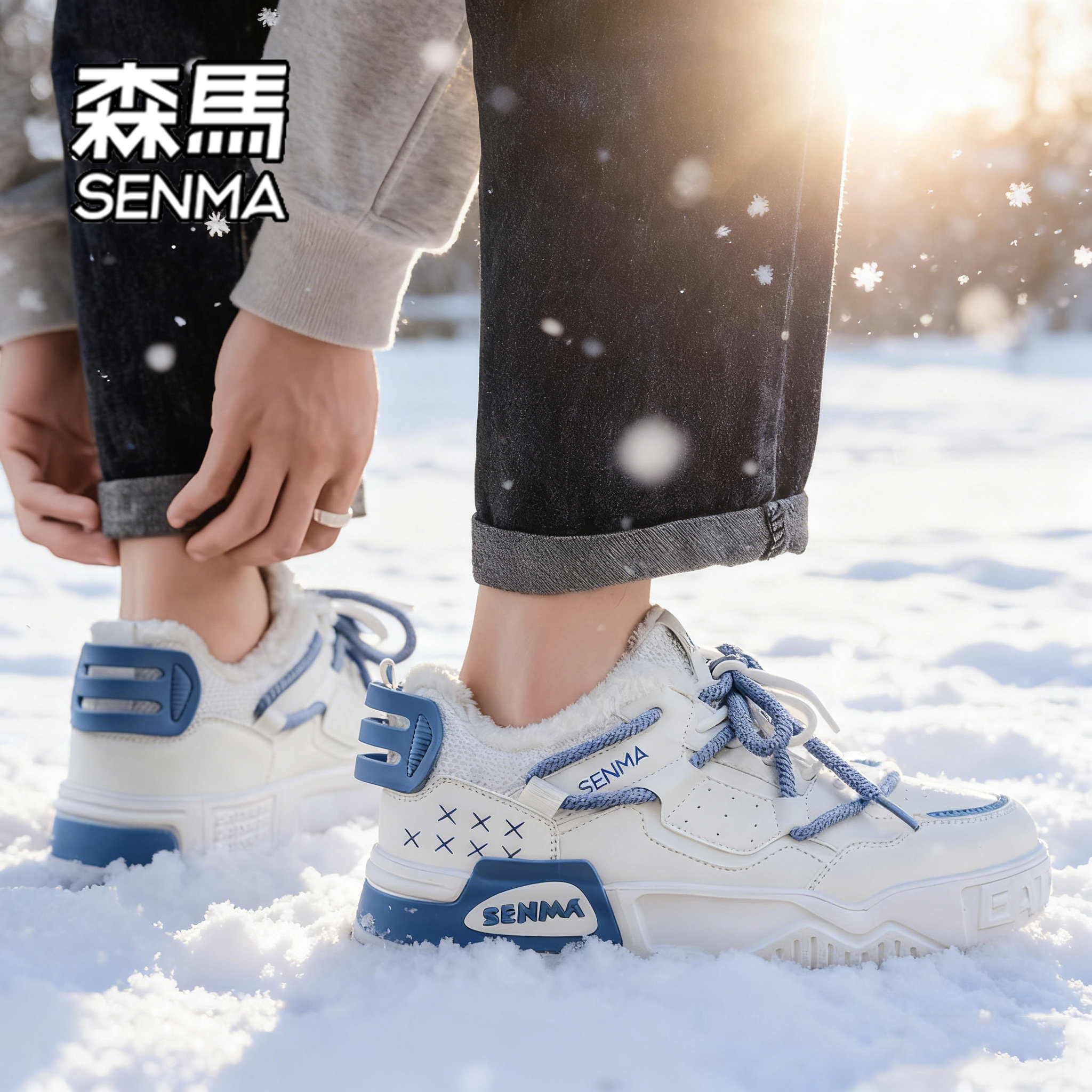 天森马男鞋2025新款冬季潮鞋正品运动鞋休闲爆款男生加绒保暖棉鞋W