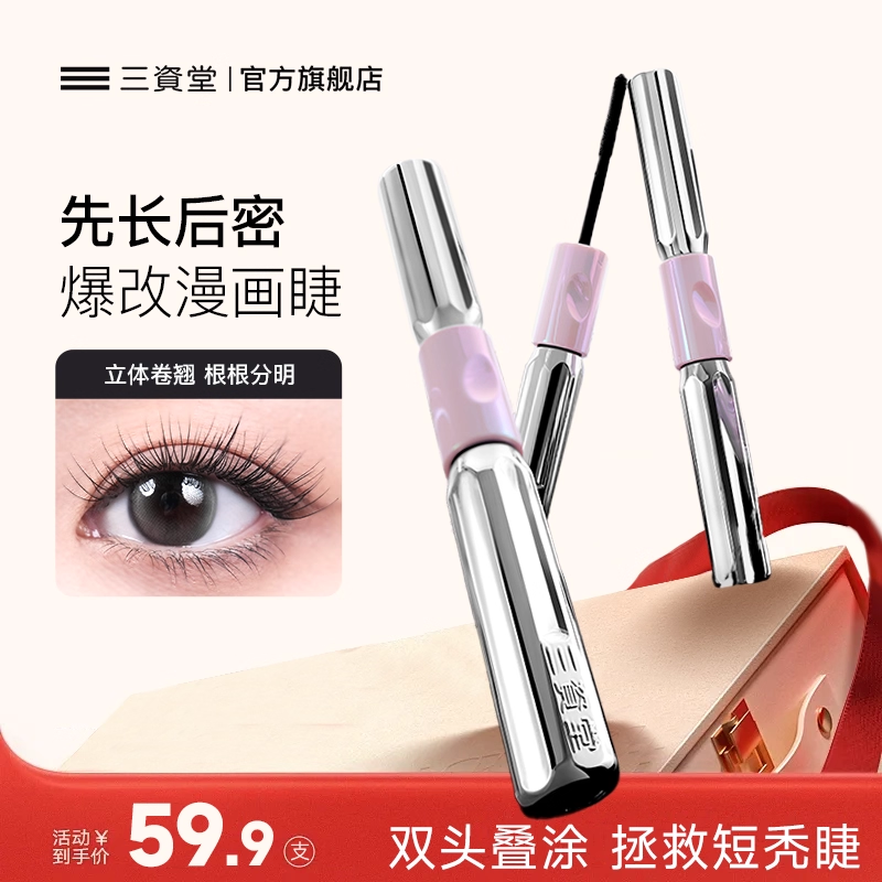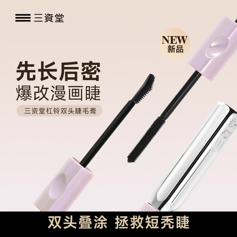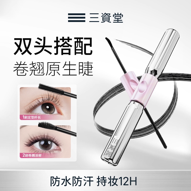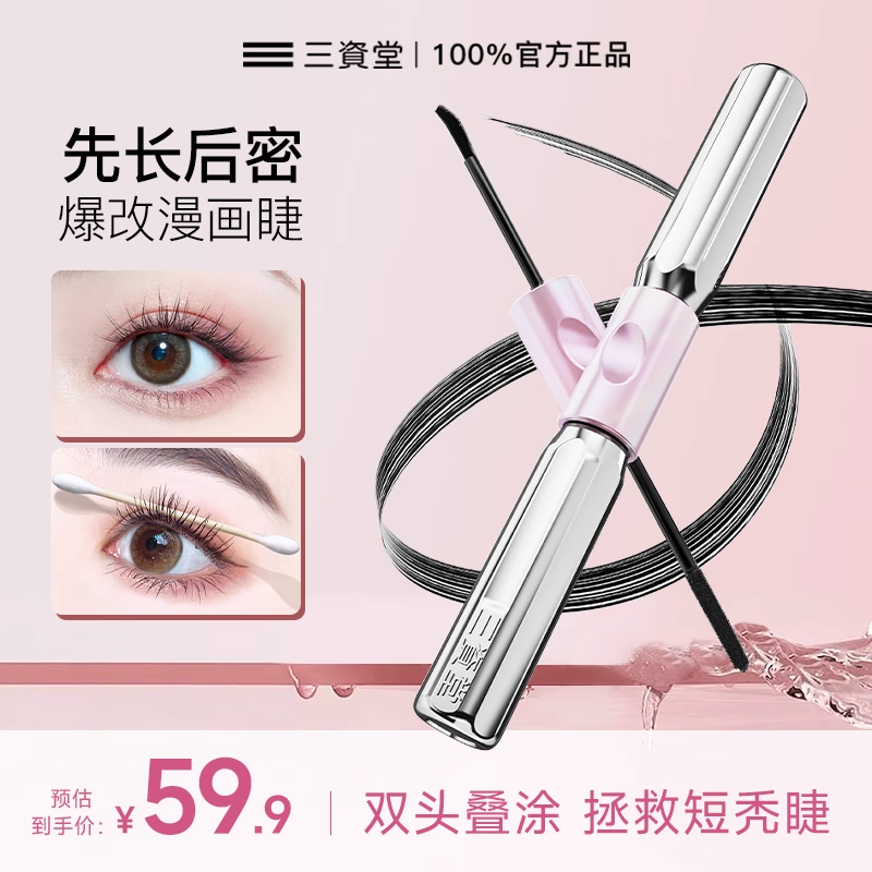 淘宝三资堂睫毛膏杠铃双头睫毛膏单支防水纤长卷翘不晕染持久定型打底