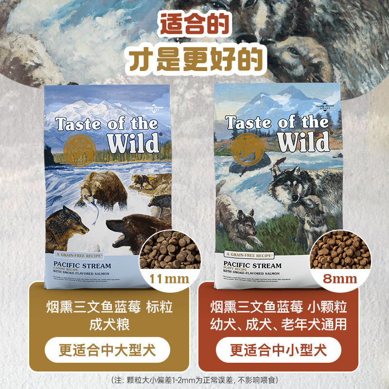 天猫【去泪痕3.0送试吃】荒野盛宴美版美毛狗粮 烟熏三文鱼蓝莓全犬粮