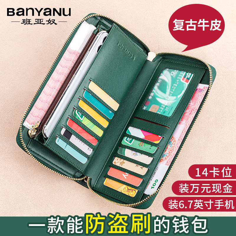 天猫班亚奴钱包女2025新款真皮大容量长款女士钱夹简约多功能手拿包女