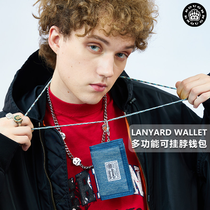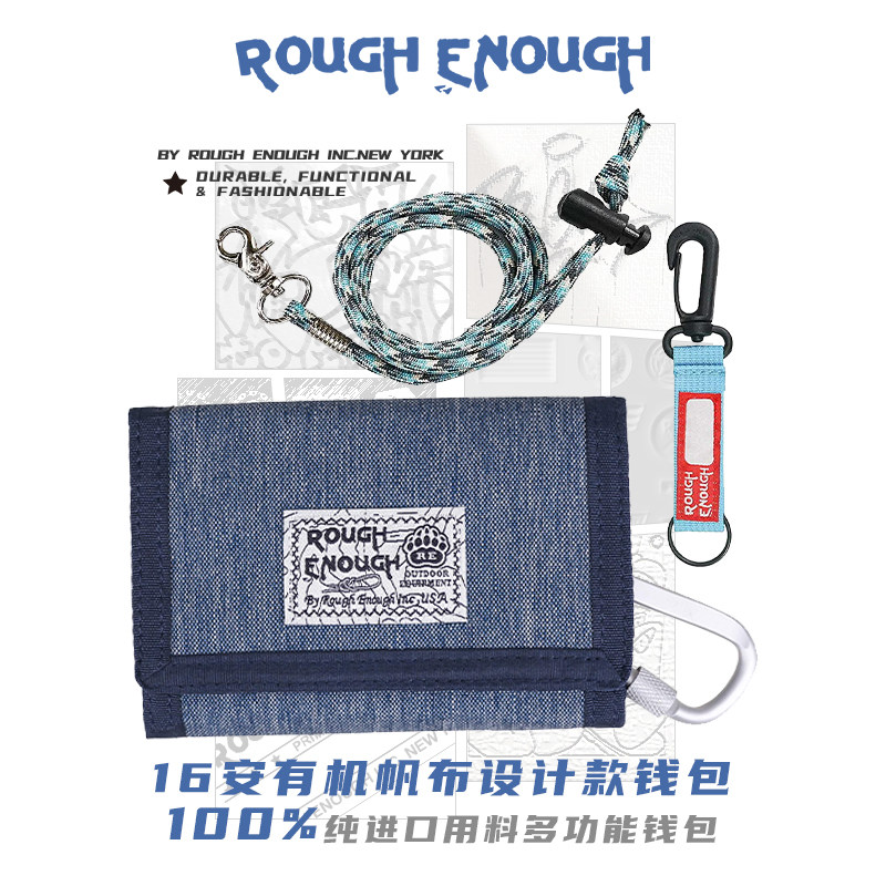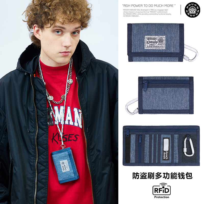 淘宝Rough Enough潮牌复古牛仔蓝帆布钱包男学生折叠卡包零钱包小钱夹