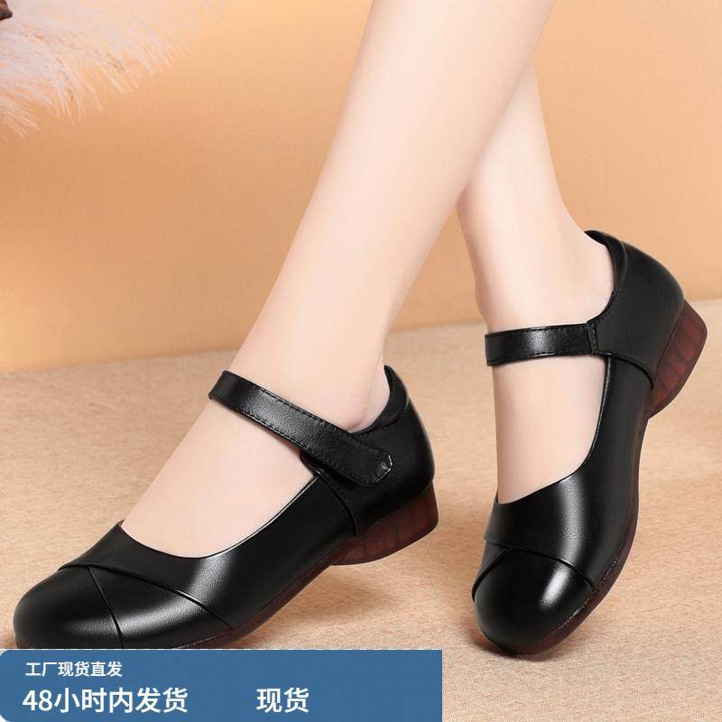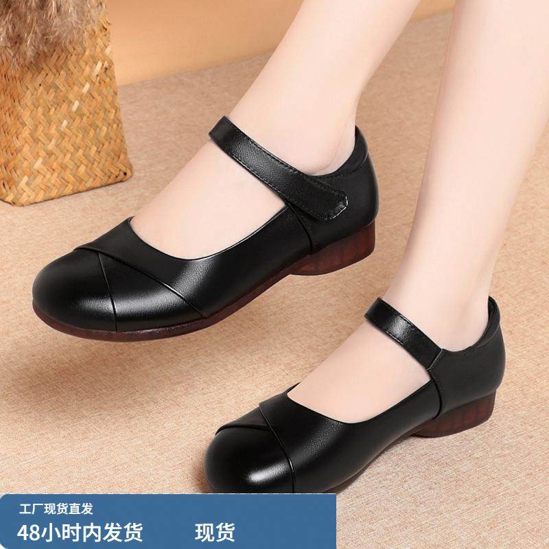 淘宝真皮软底妈妈鞋春秋单鞋舒适不磨脚防滑中老年女鞋休闲皮鞋平底鞋