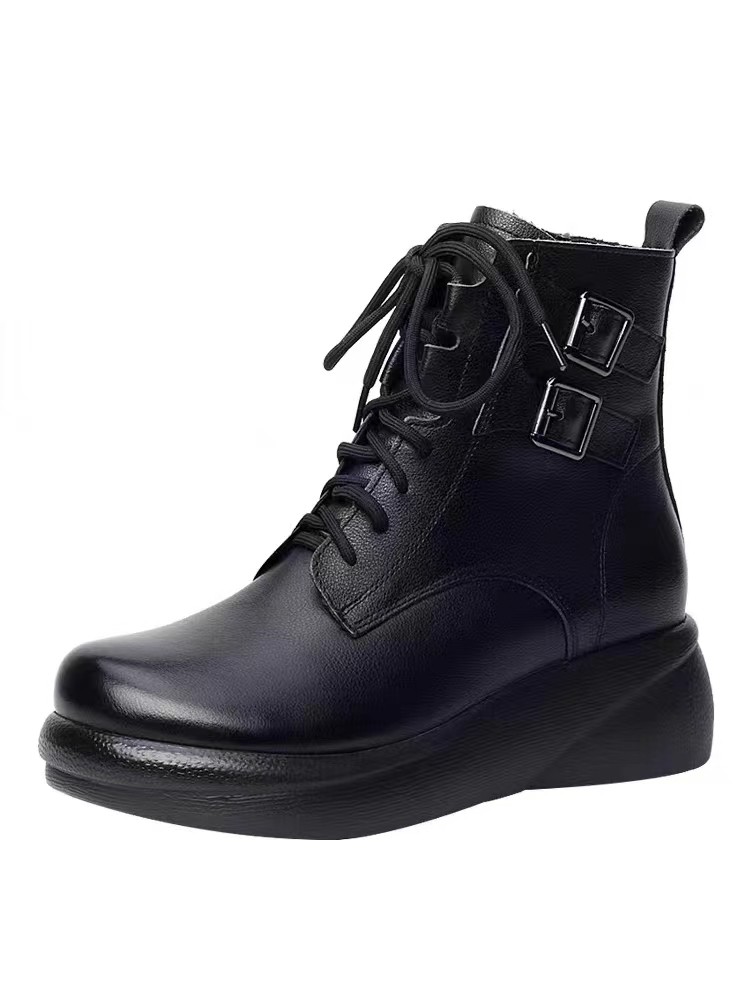 淘宝中年妈妈靴子女厚底短靴女真皮2024秋冬新复古拉链马丁靴圆头软底
