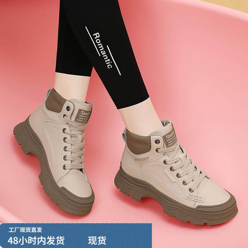 淘宝女鞋休闲马丁靴真皮短靴秋冬季厚底妈妈皮鞋单靴子新款加绒