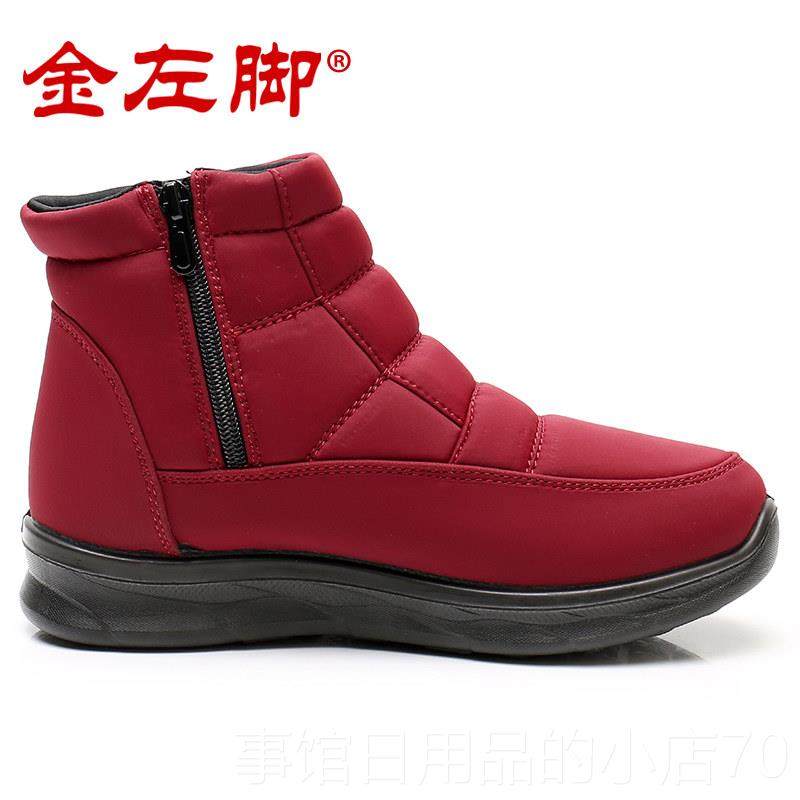 足力健老人鞋正品加绒保暖鞋轻便软底妈妈鞋冬季棉鞋雪地靴防寒鞋