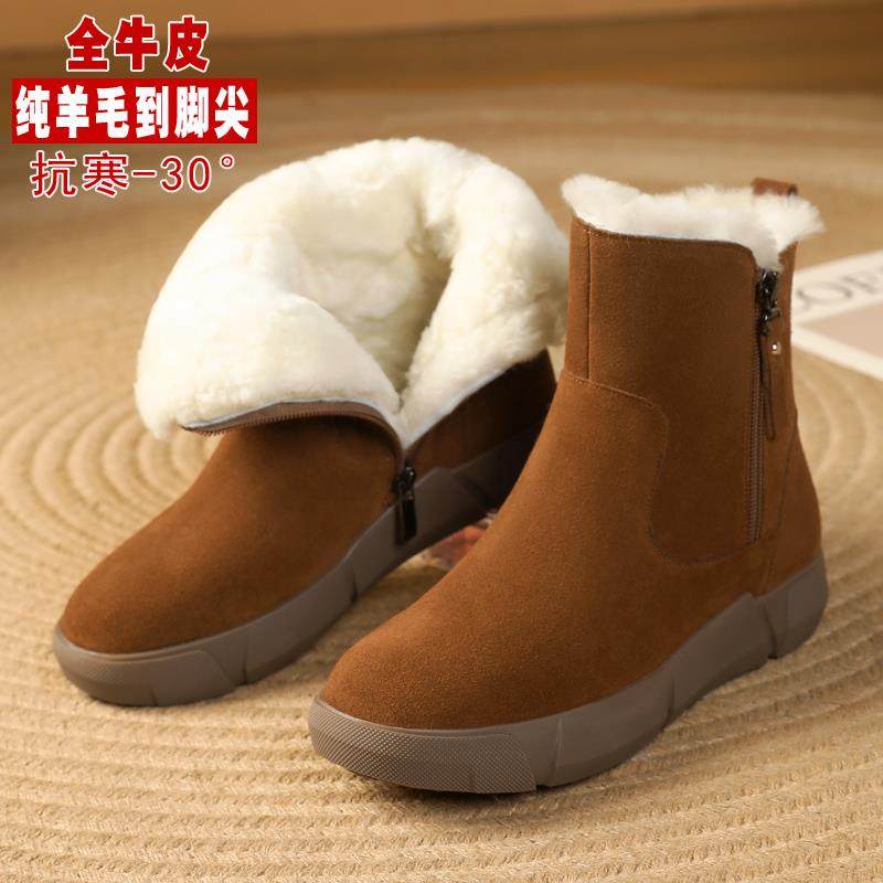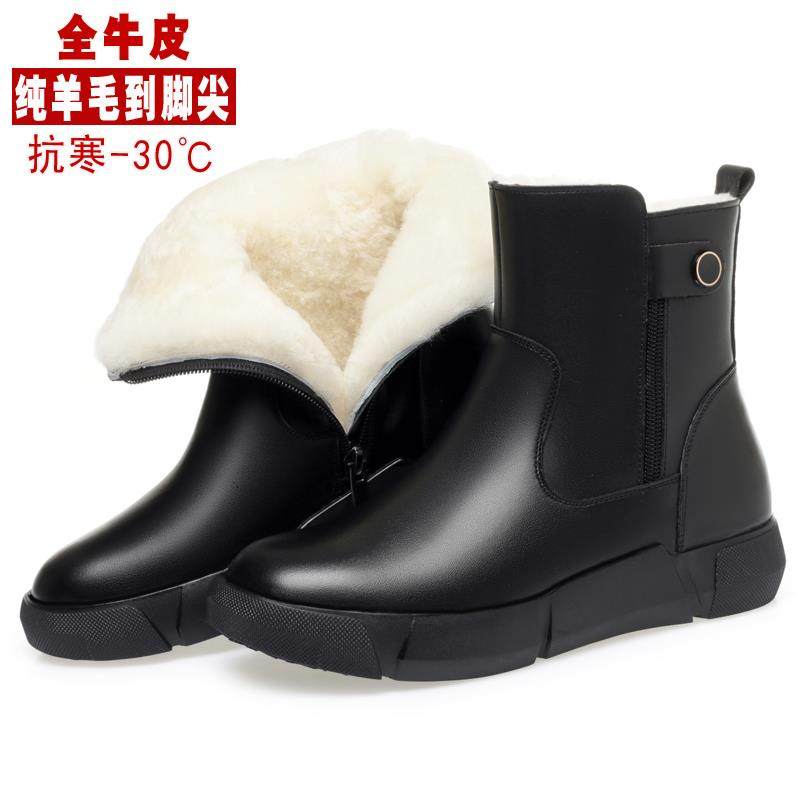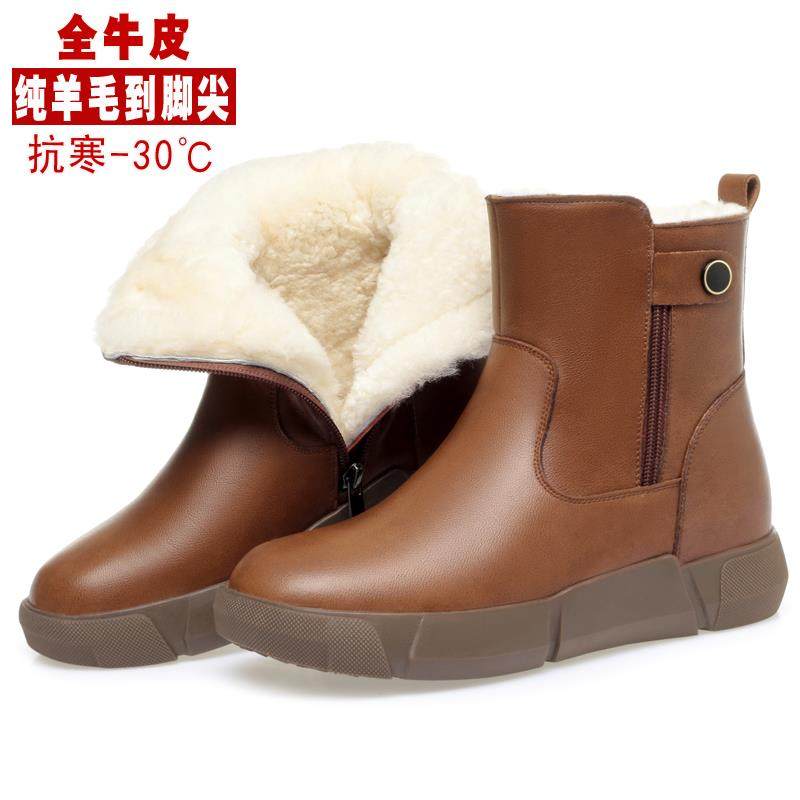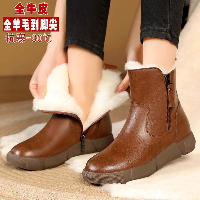 淘宝高档牛皮雪地靴女款冬季加绒女鞋妈妈大棉羊鞋皮毛体一真皮短靴靴