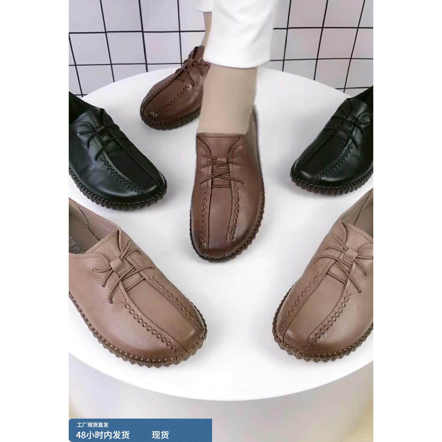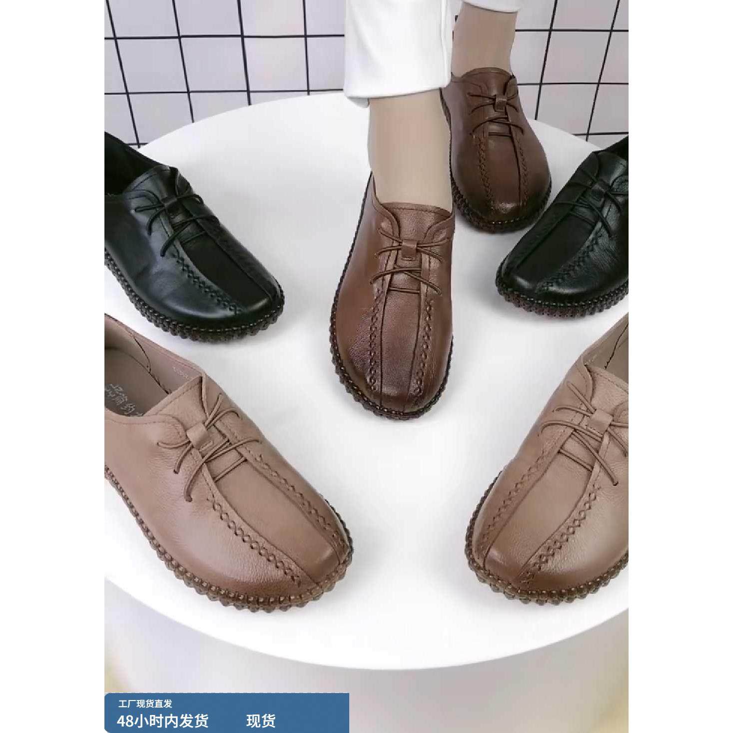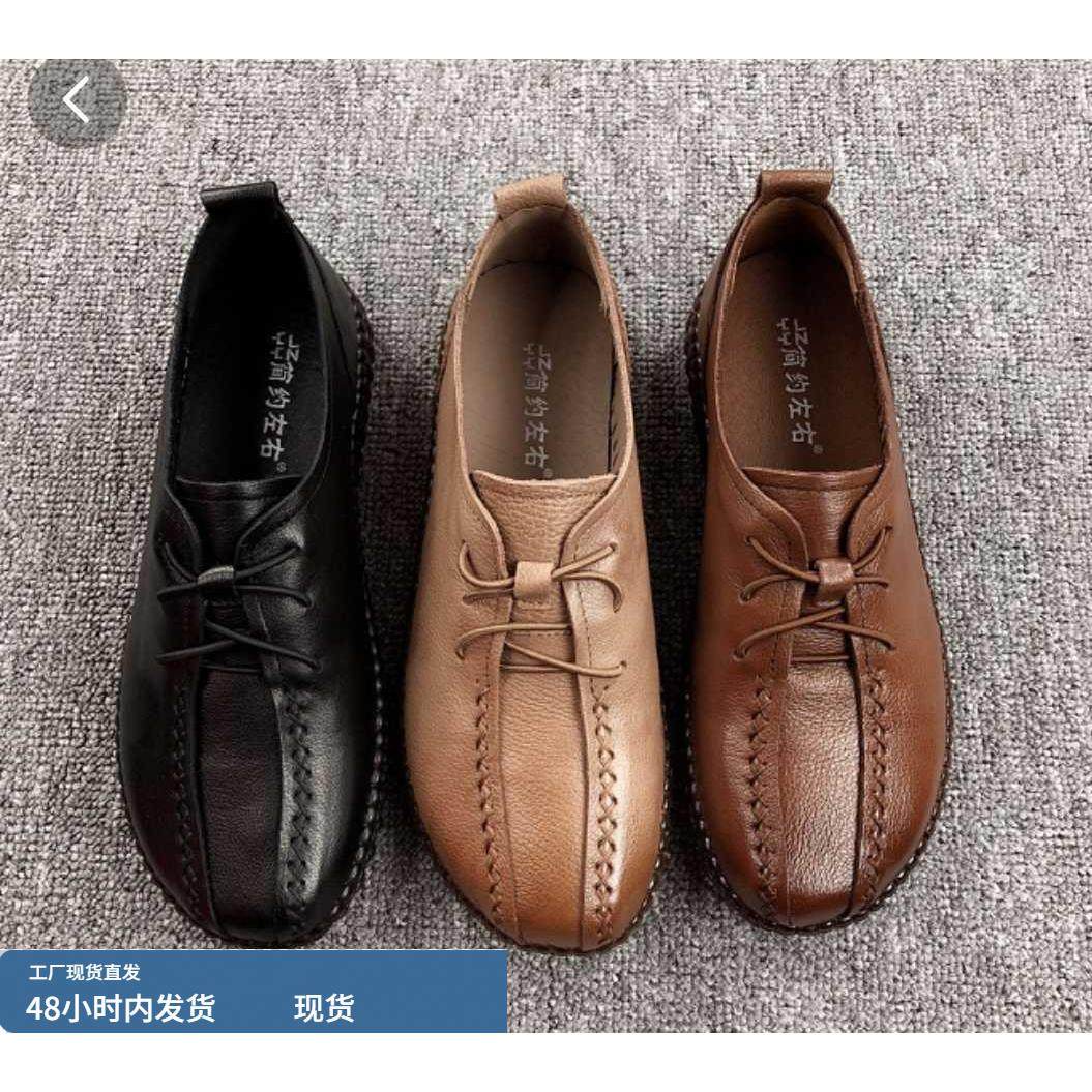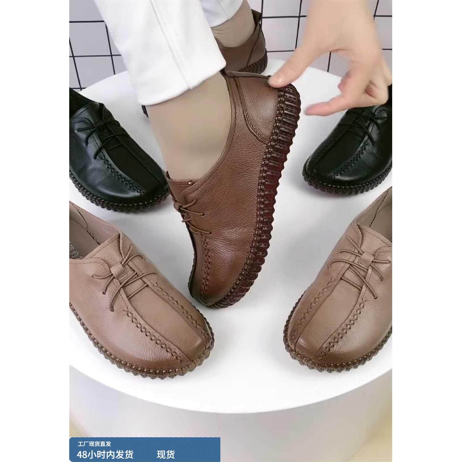 淘宝软底妈妈鞋2023春新款舒适牛筋底单鞋真皮一脚蹬防滑休闲大码女鞋