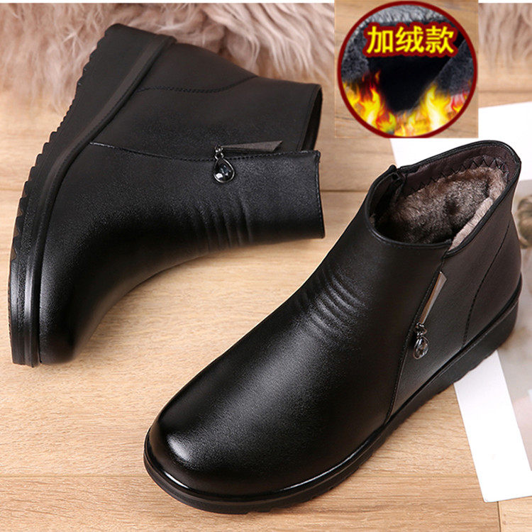 淘宝冬季妈妈老人棉鞋保暖真皮加绒皮鞋绒毛短靴女中老年平底防滑女靴