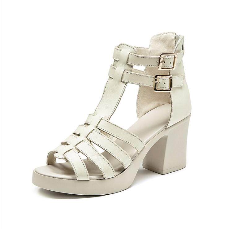淘宝正品夏新中款罗马年粗妈妈凉鞋真皮跟高跟防水台鱼嘴百搭时尚闲休