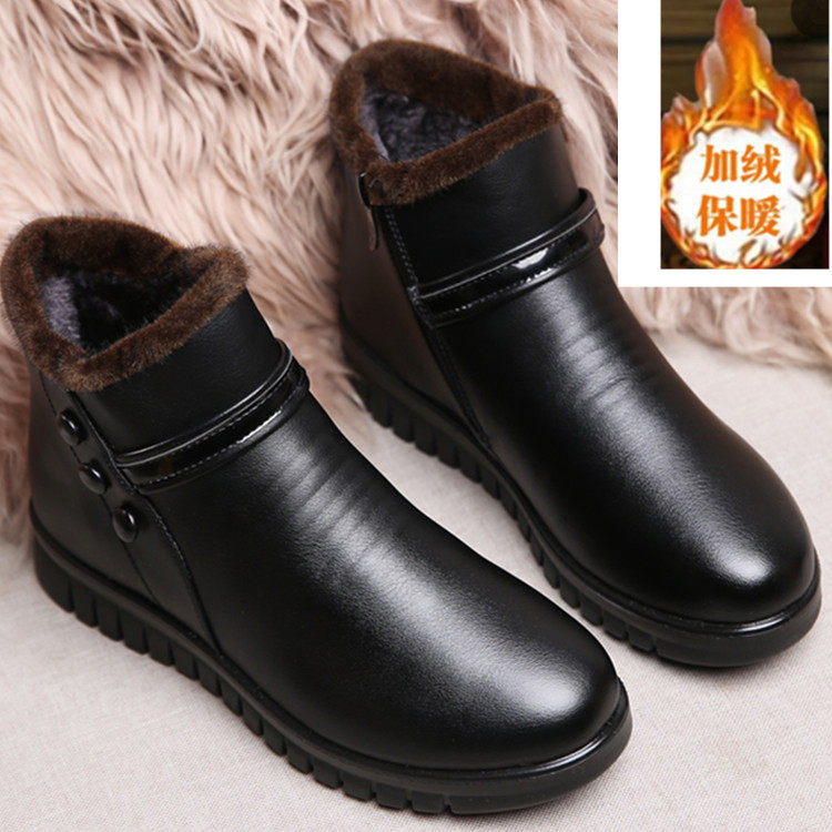 淘薏尓康冬季加绒厚底妈妈棉靴中筒女士真皮棉鞋女式皮鞋加厚雪地靴