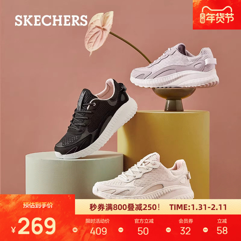 天猫斯凯奇女鞋新款棉花糖舒适运动鞋厚底减震妈妈鞋百搭小白鞋轻便