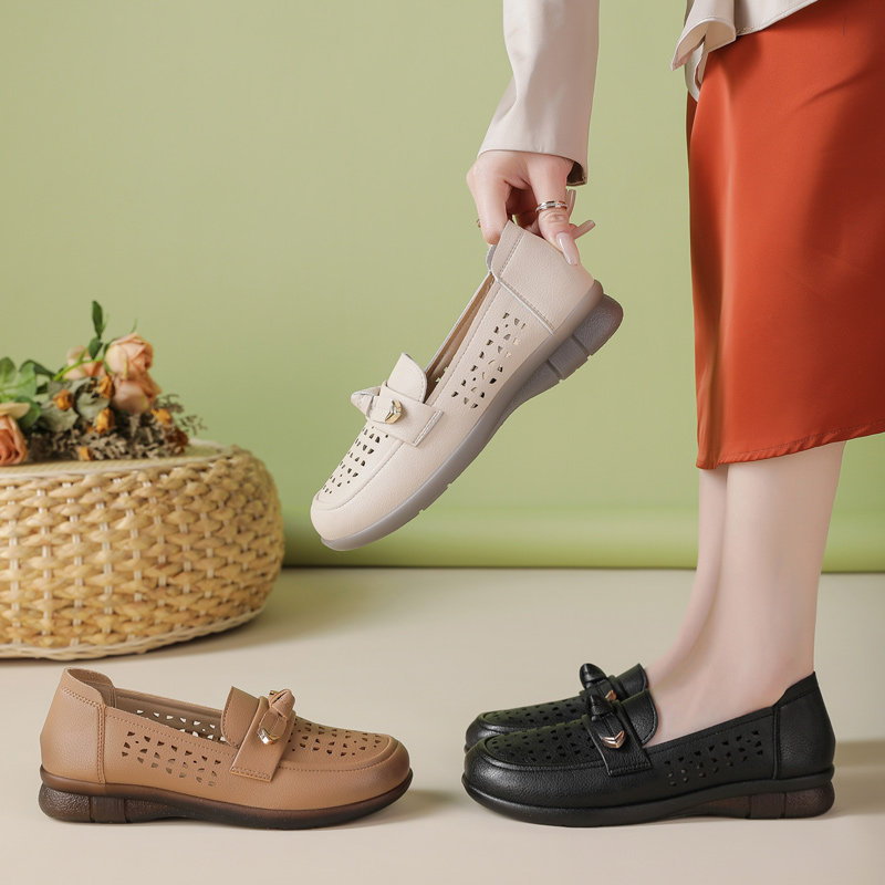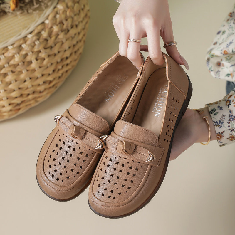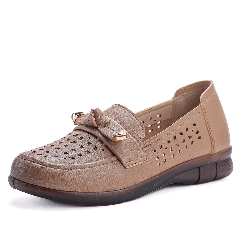 淘宝真皮软底妈妈鞋子凉鞋女款闰月中老年单鞋镂空透气洞洞鞋2025夏季