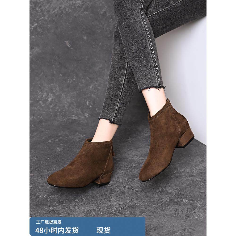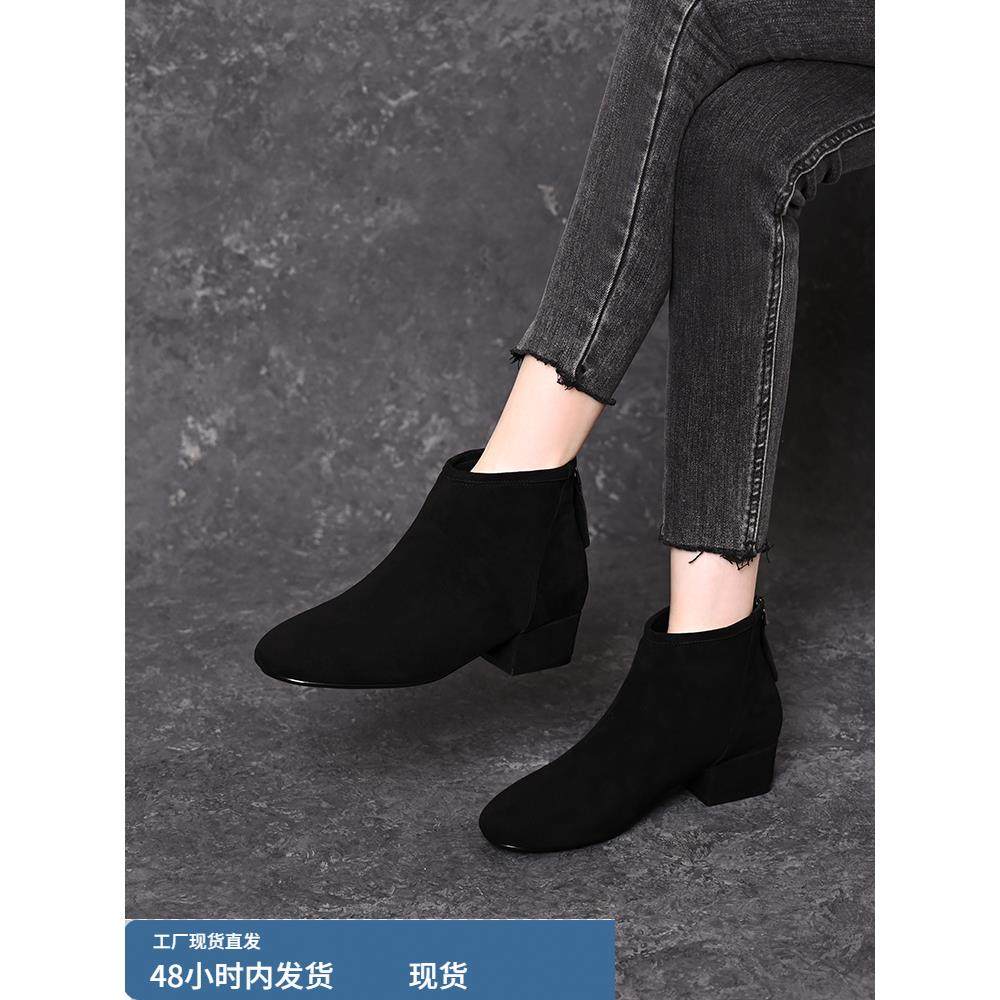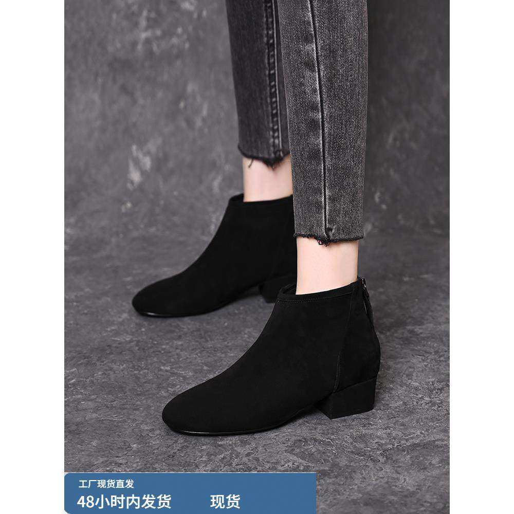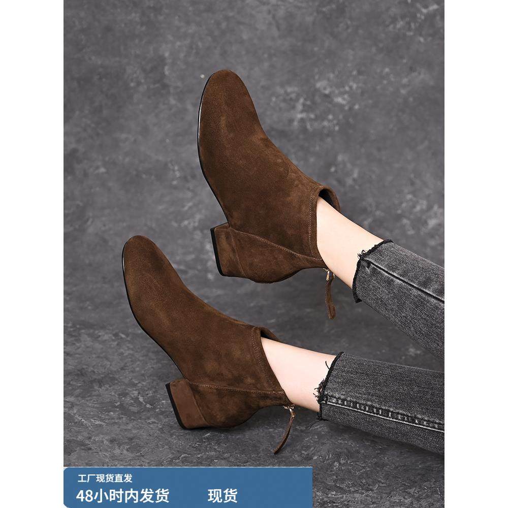 淘宝羊绒短靴女秋冬2025新款加绒中跟小踝靴百搭舒适中年妈妈靴子女鞋