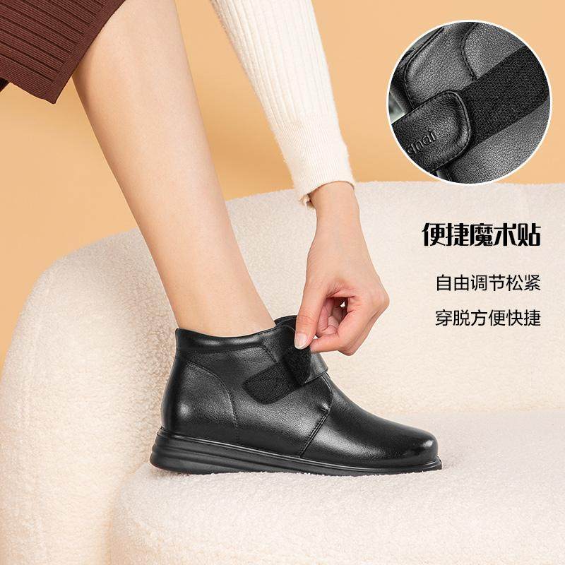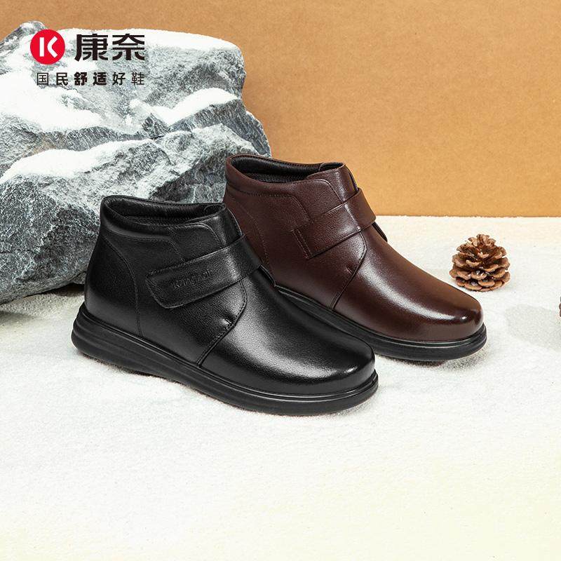 淘宝康奈女鞋秋冬季真皮短靴女皮靴妈妈棉鞋加绒内里保暖皮鞋