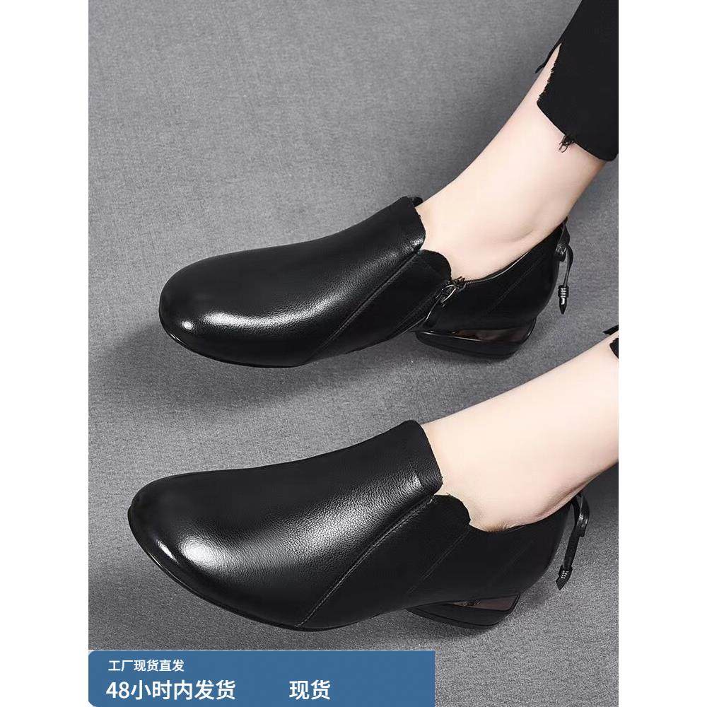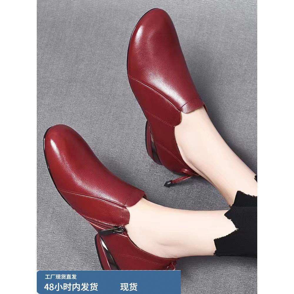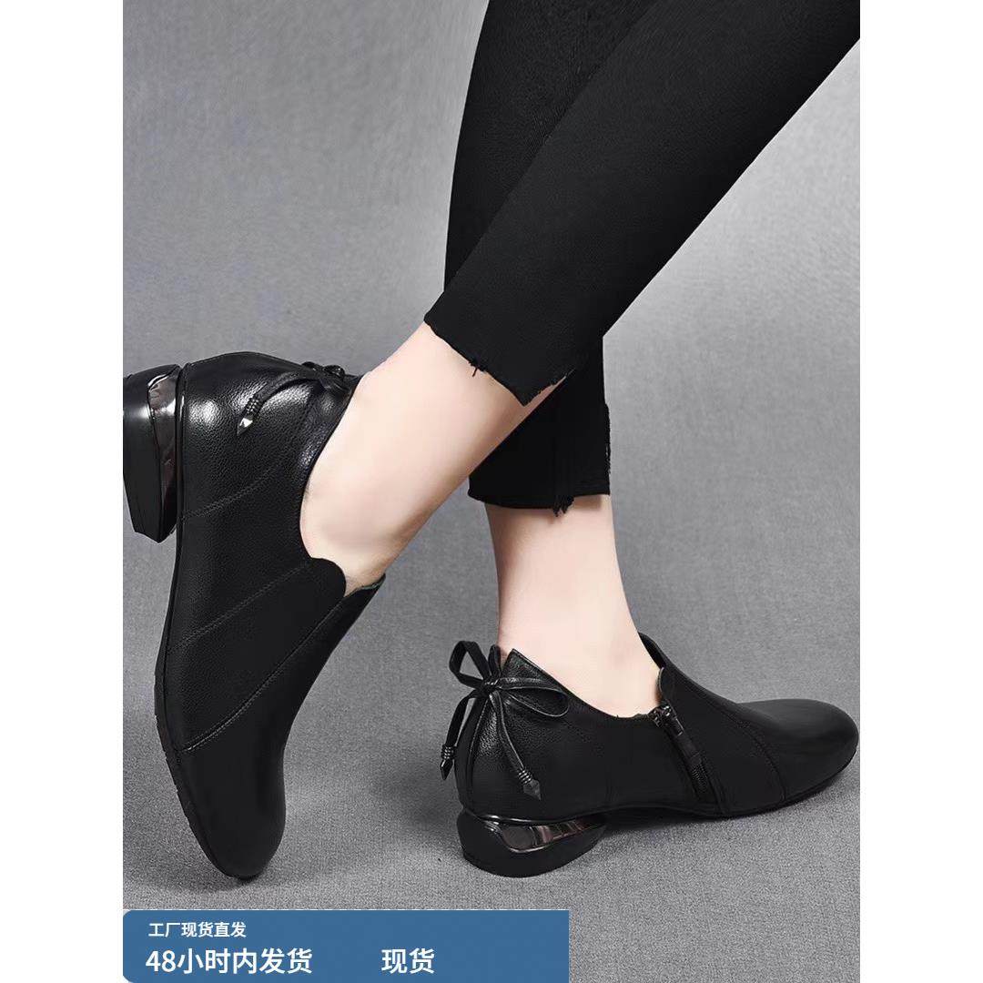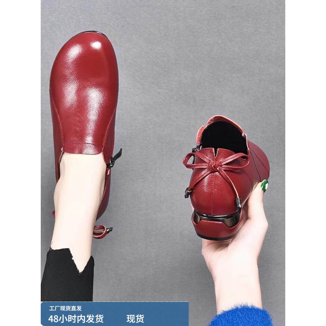 淘宝平底乐福鞋女单鞋春秋季2025真皮圆头低跟舒适深口单鞋平跟妈妈鞋