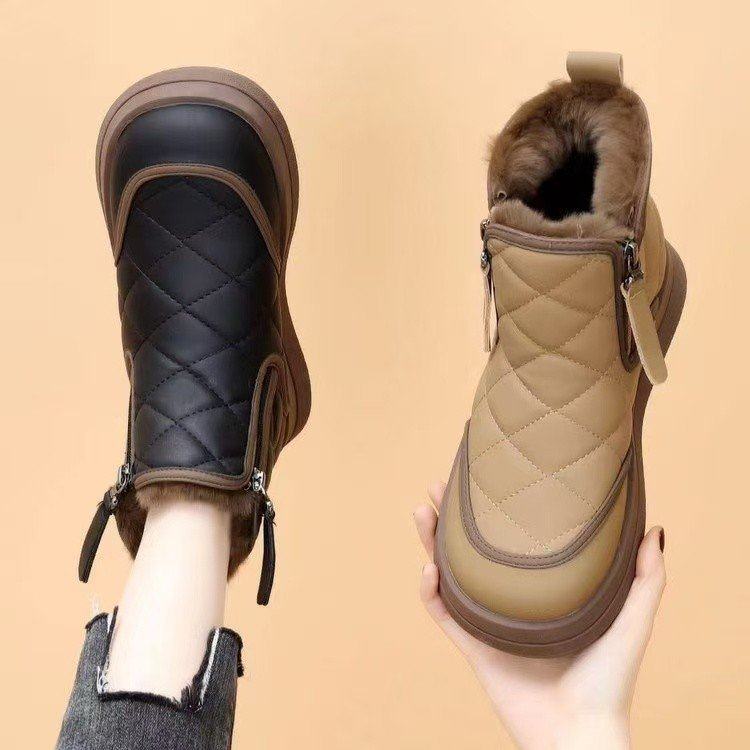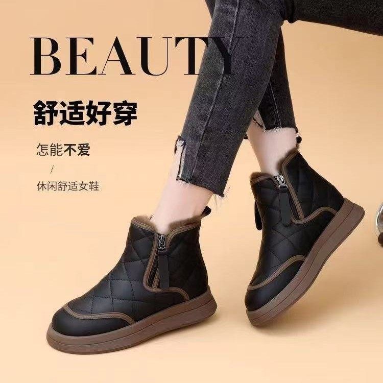 冬季加绒新款女棉鞋软底舒适毛毛鞋休闲时尚雪地靴加厚保暖妈妈鞋