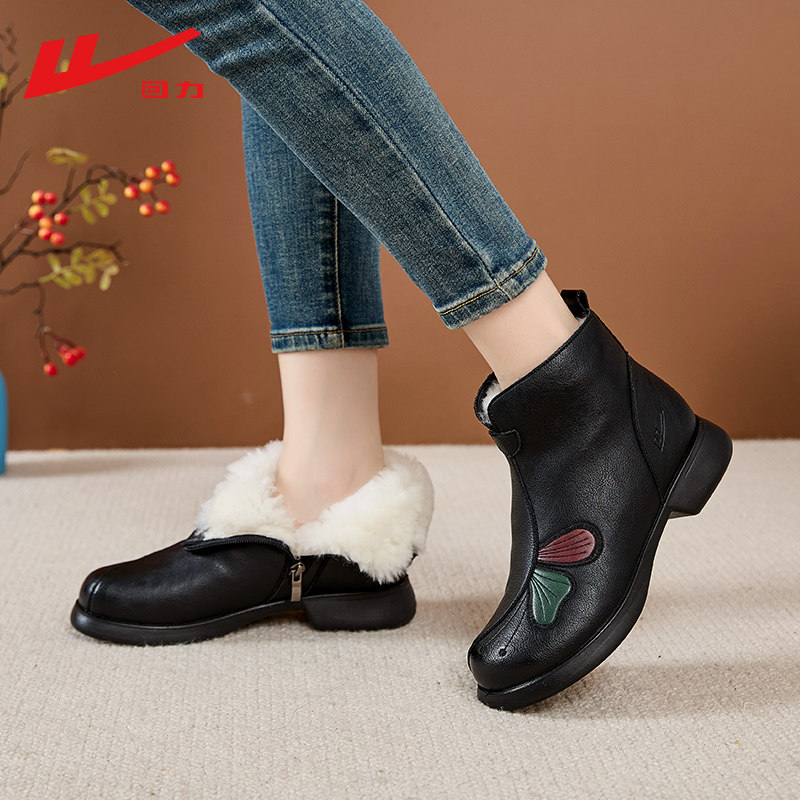 回力官方旗舰店妈妈鞋冬季加绒保暖女鞋子中老年人棉鞋舒适老人鞋