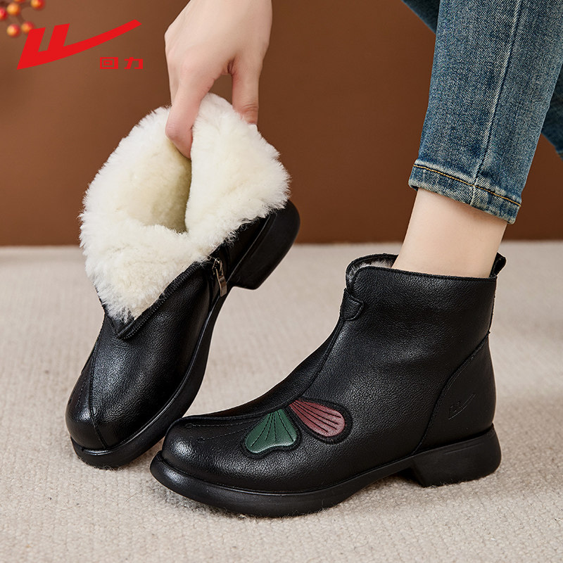 淘宝回力正品女靴2025冬季新款加绒保暖中筒靴软底防滑妈妈鞋棉靴鞋款