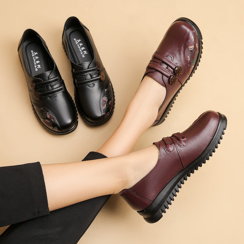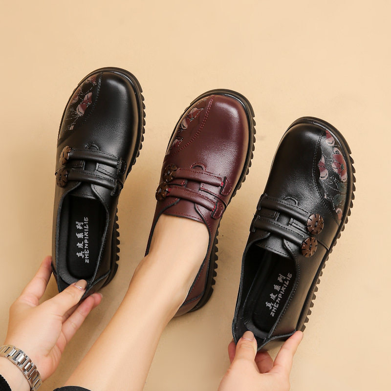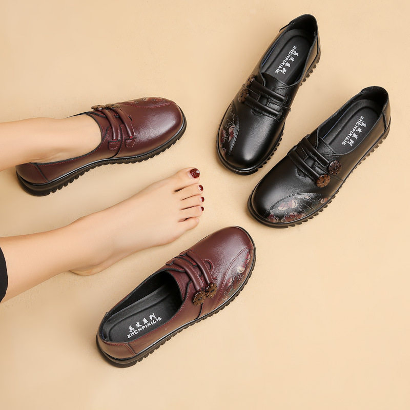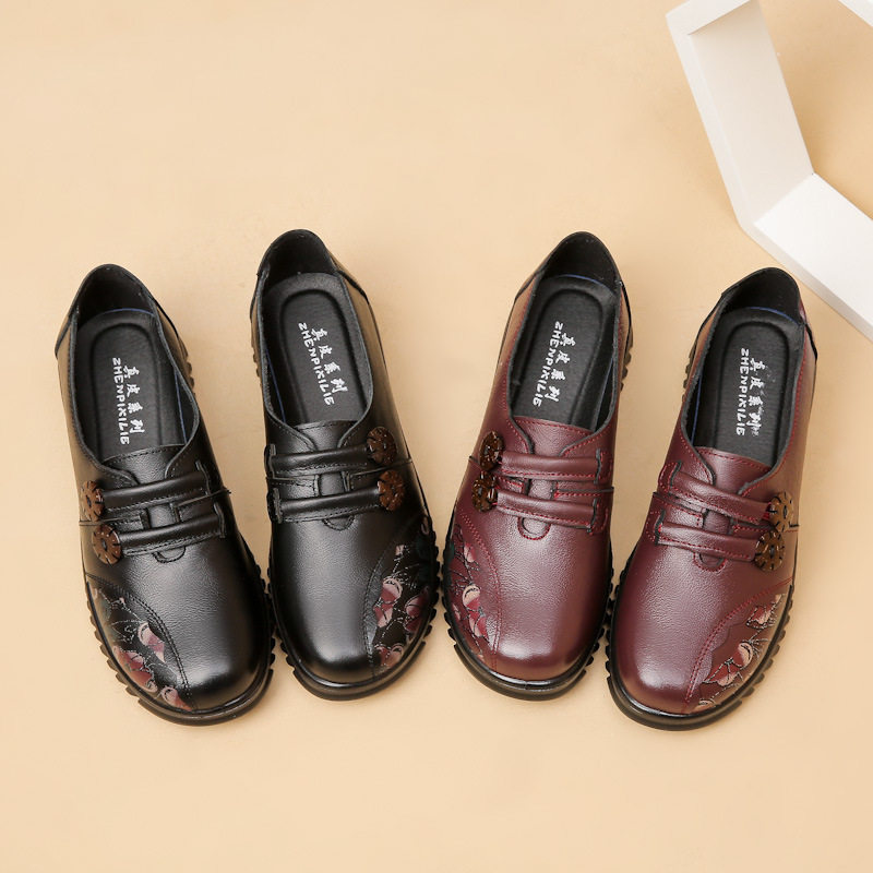 淘宝新款真皮妈妈鞋单鞋软底舒适复古民族风平底中老年人奶奶女鞋