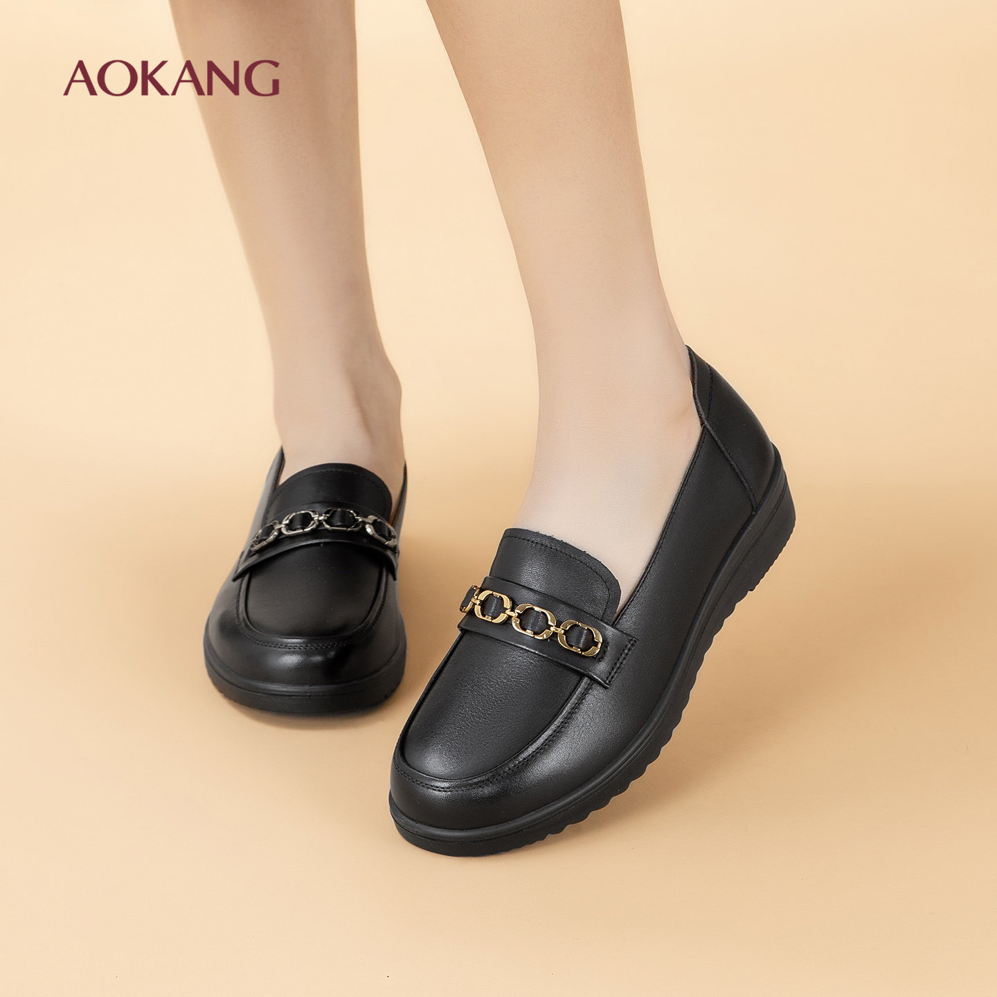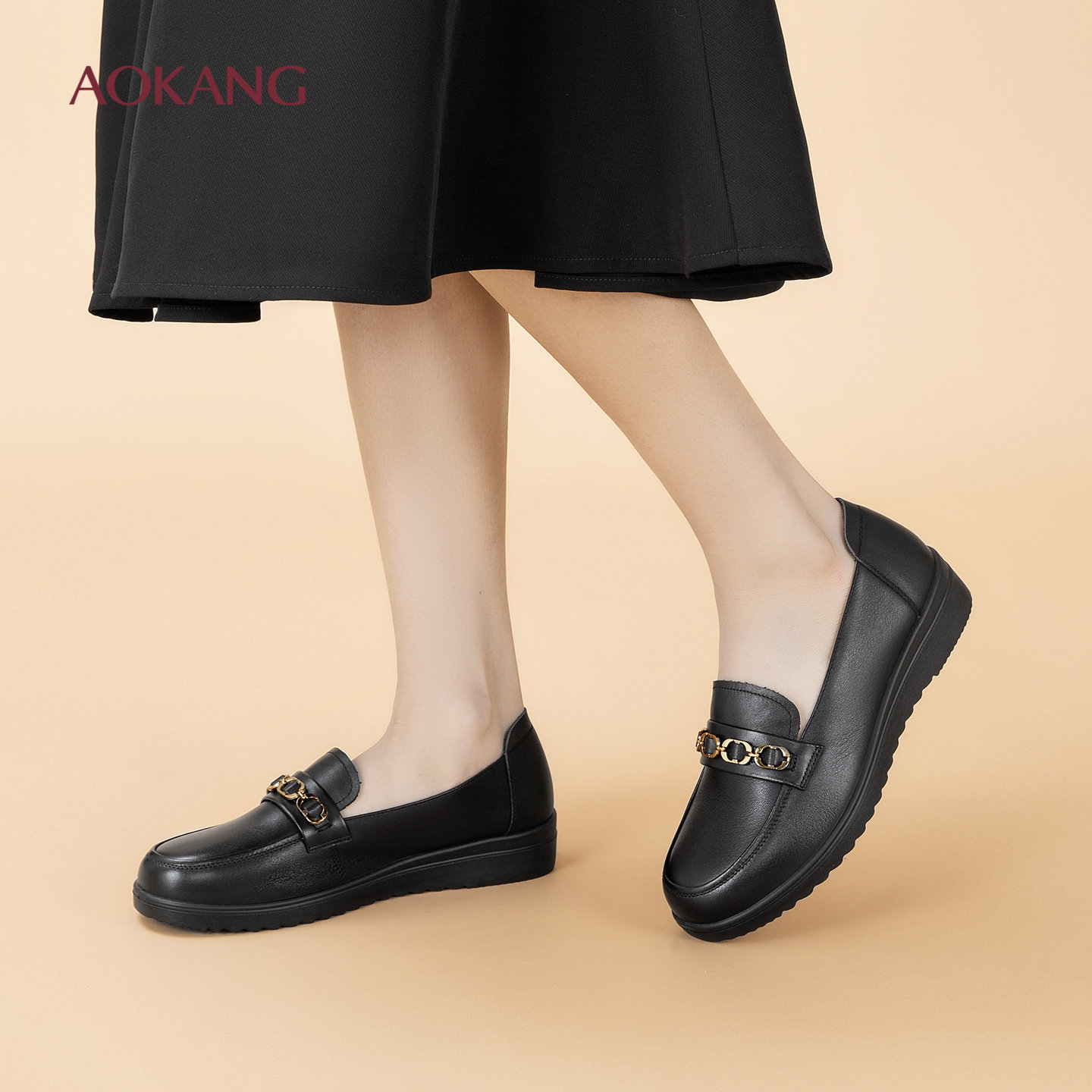 奥康女鞋2026春季新款真皮软底妈妈鞋,专为中老年女性贴心设计。采用优质头层牛皮,柔软透气,贴合脚型,久穿不闷脚。平底乐福鞋款式简约大方,搭配便捷,轻松驾驭日常出行、休闲聚会等多种场合。内置高弹缓震软底,有效缓解足部压力,久走不累,呵护关节健康。防滑耐磨橡胶大底,抓地力强,行走更安全。内里亲肤细腻,减少摩擦,提升舒适度。经典金属扣饰点缀,增添优雅气质。奥康以匠心工艺打造舒适耐穿的贴心鞋履,让妈妈每一步都轻松自在,尽享春日美好时光。