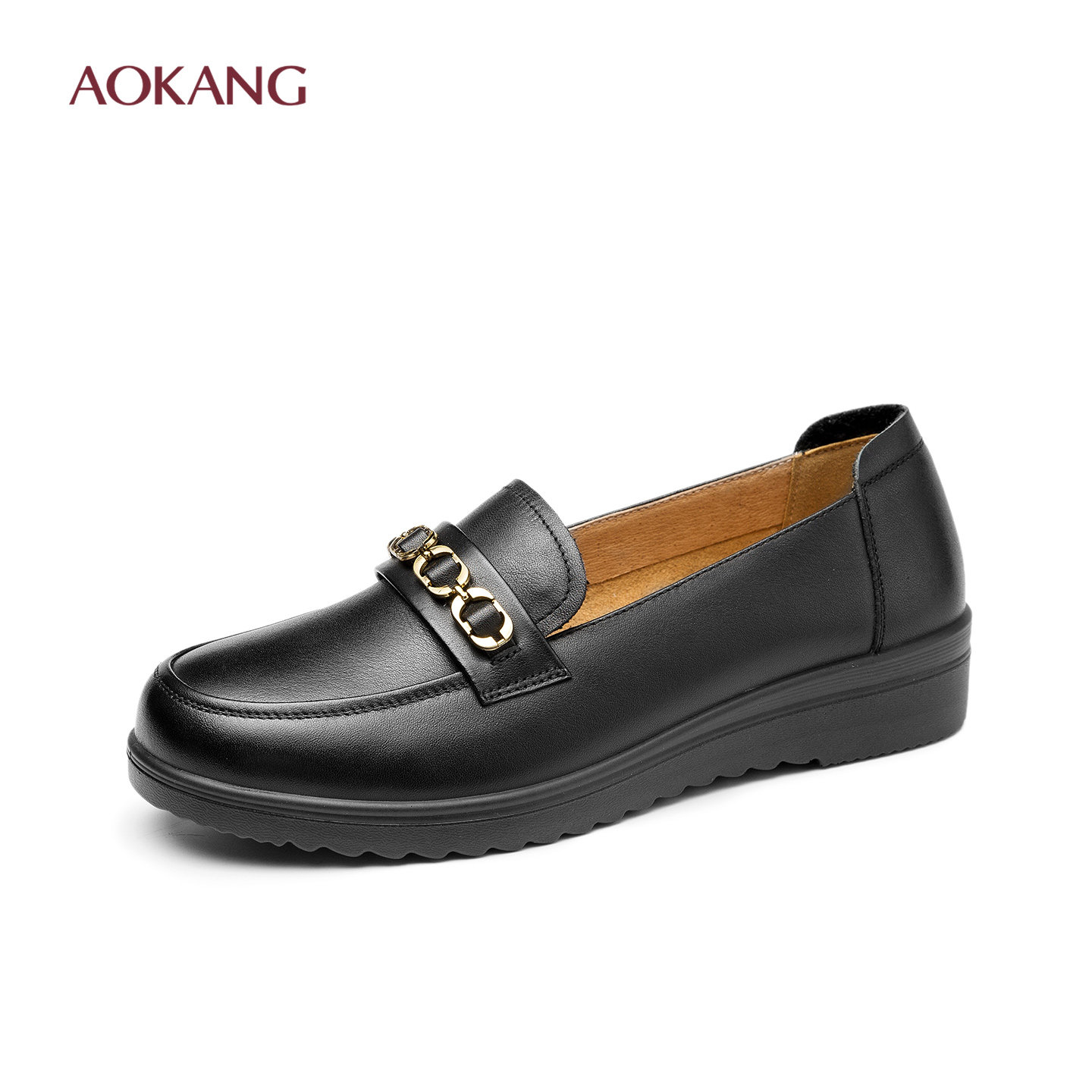 天猫奥康女鞋2026春季新款真皮软底妈妈鞋平底中老年单鞋不累脚乐福鞋