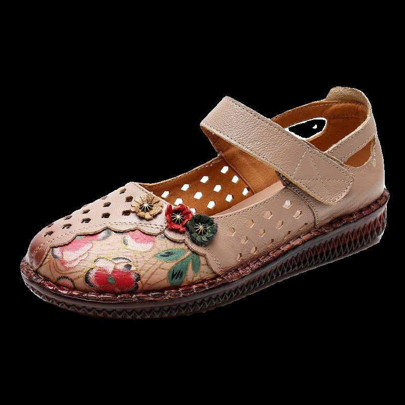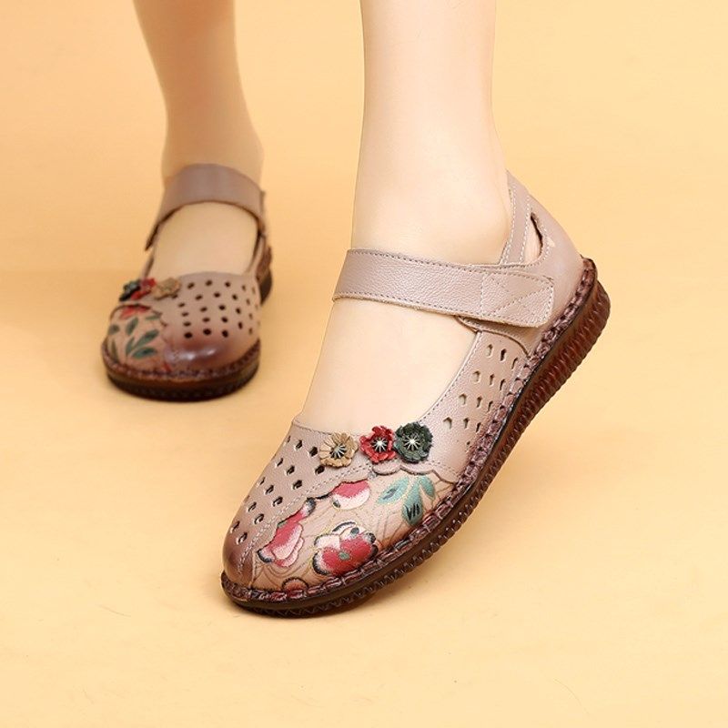 这款夏季单鞋专为中老年女性设计,采用优质真皮材质,柔软透气,贴合脚型,穿着舒适不磨脚。软底设计有效减震,久走不累,特别适合日常出行或散步。鞋面采用镂空洞洞设计,兼具时尚与透气性,夏日穿着清爽自在。平底防滑大底,行走稳健安全,提升穿着信心。简约大方的外观搭配经典色系,轻松搭配各种服饰。无论是居家、买菜还是短途旅行,都是妈妈们的贴心之选。专为中老年脚型优化,宽楦设计不挤脚,呵护双足健康,是送给母亲的一份贴心礼物。