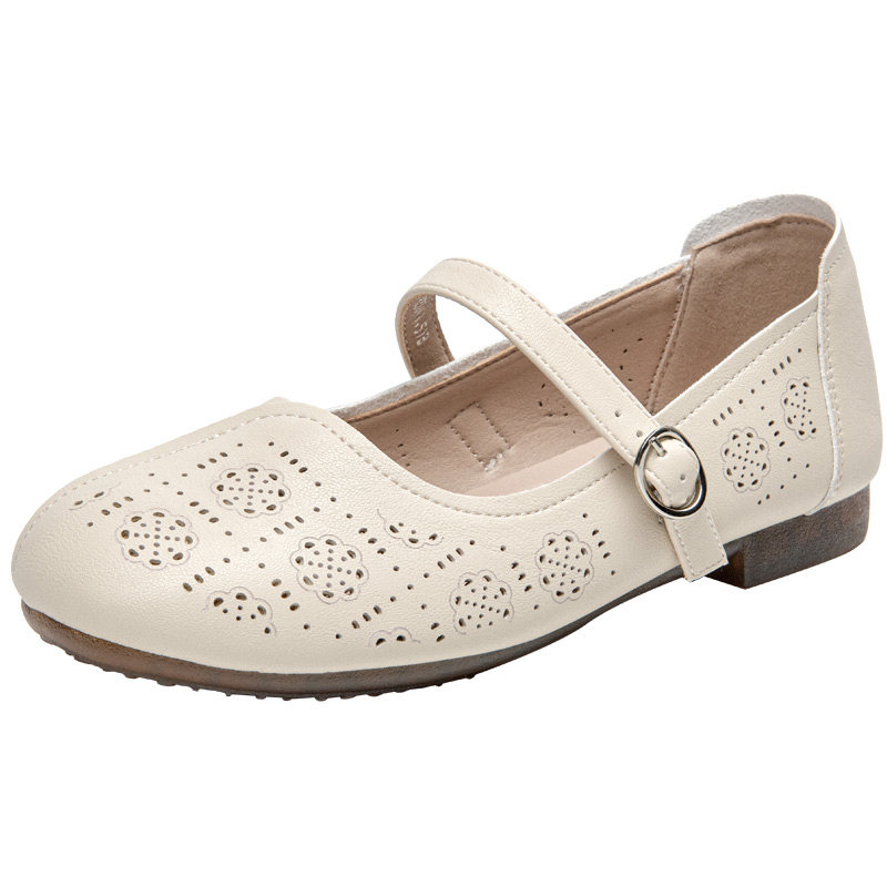 天猫大东平底软底单鞋女2026新款春季奶奶鞋镂空透气女鞋中老年妈妈鞋