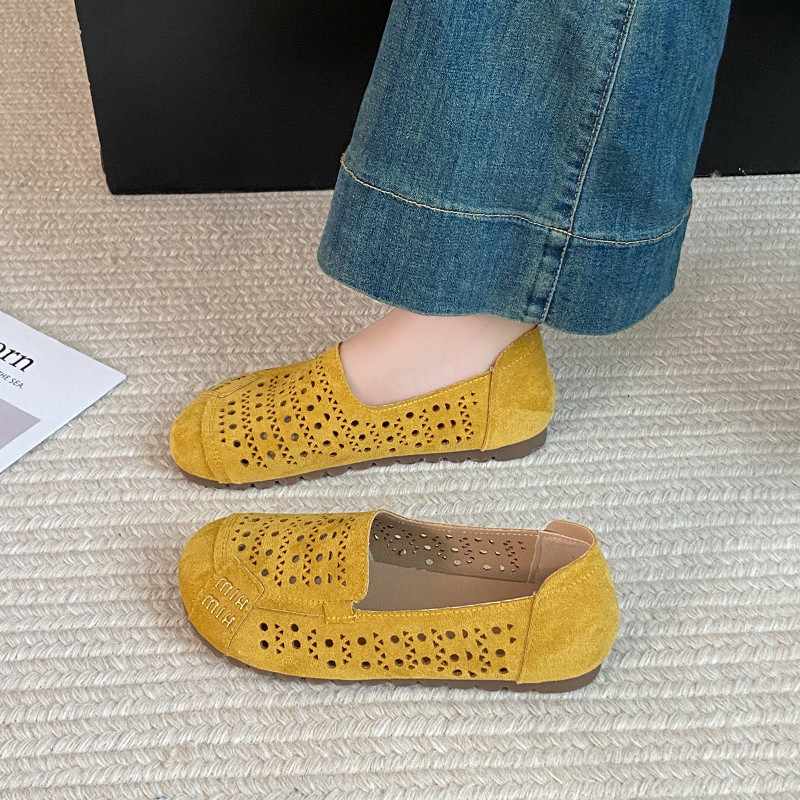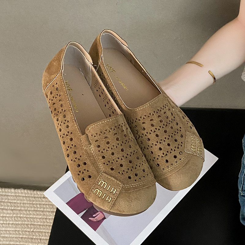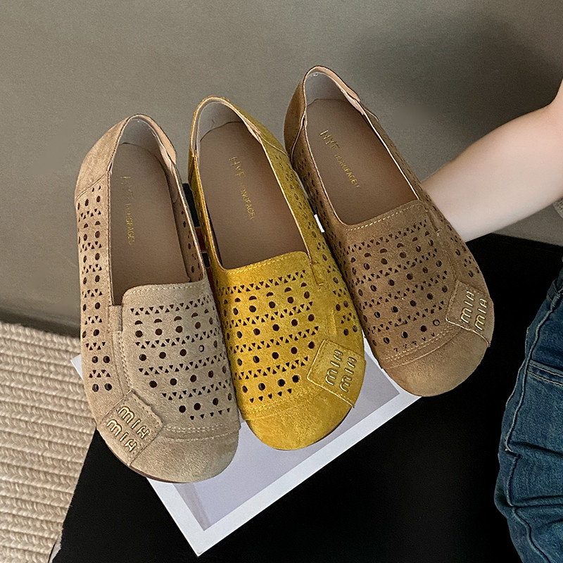 淘宝2025春夏新款一脚蹬透气镂空洞洞鞋软底外穿豆豆鞋复古平底妈妈鞋