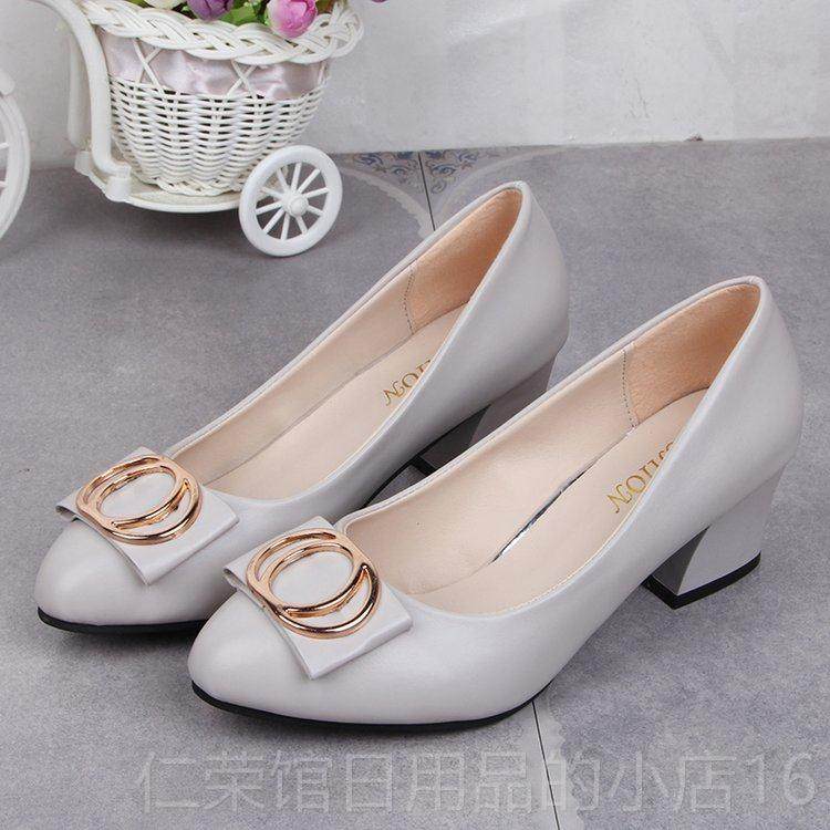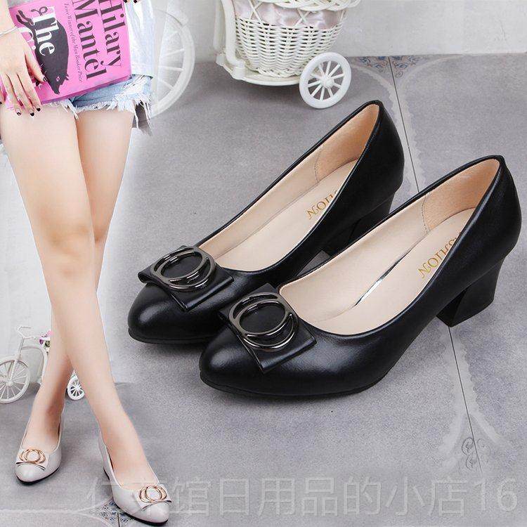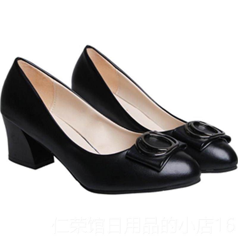 淘宝正品工中舒年女士皮鞋春秋适妈妈鞋中跟浅滑口单鞋粗跟防女鞋低跟