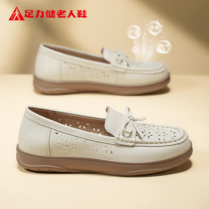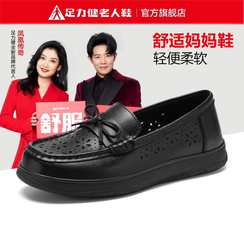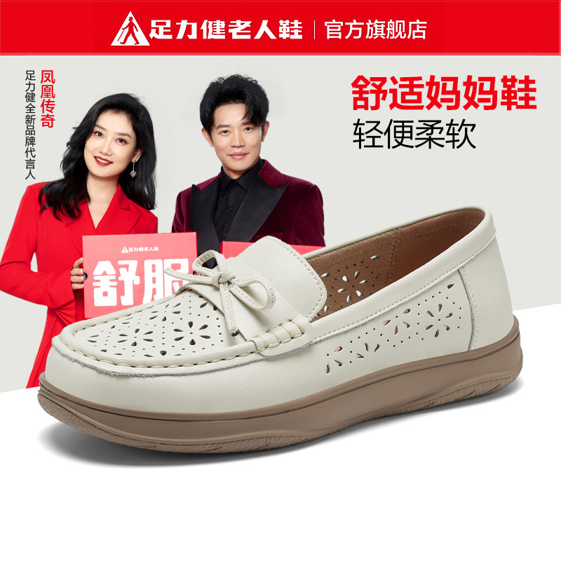 天猫足力健老人鞋夏季女鞋镂空透气中老年妈妈鞋真皮休闲小皮鞋正品