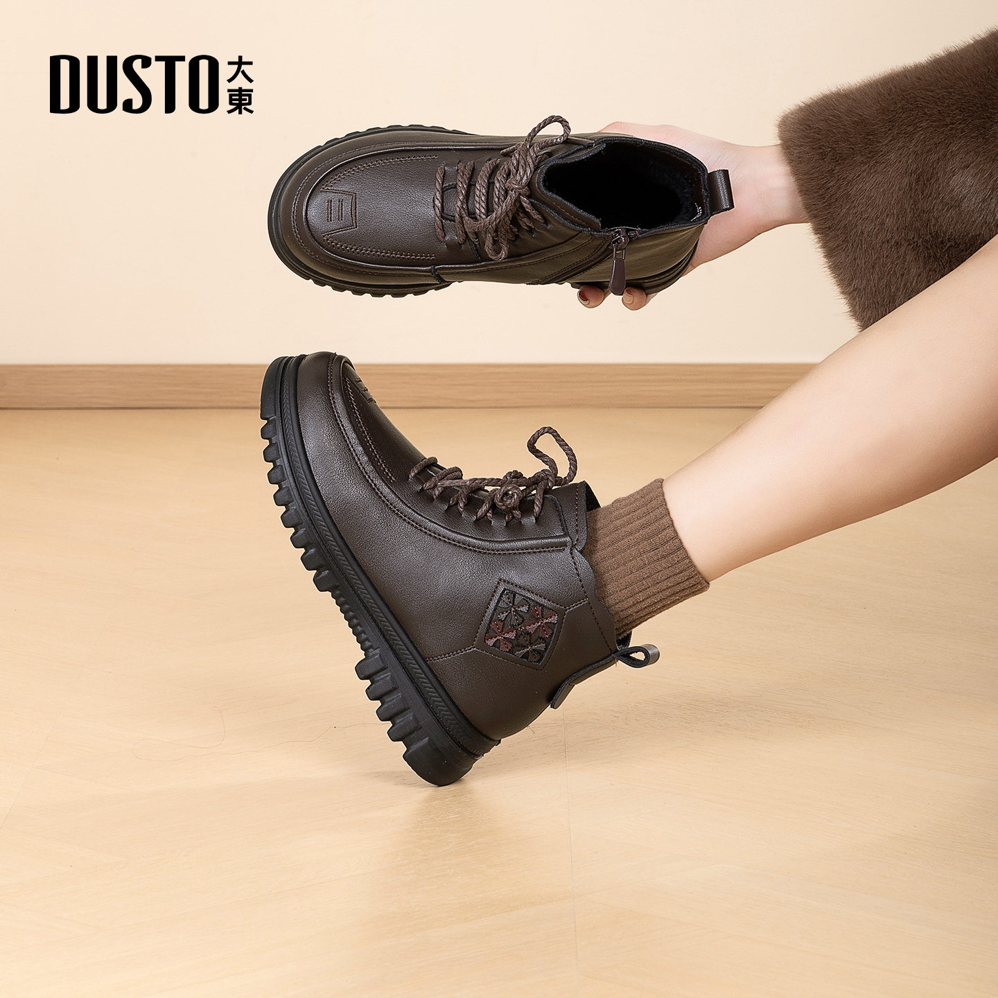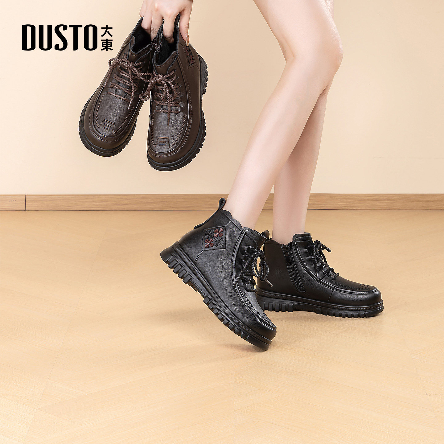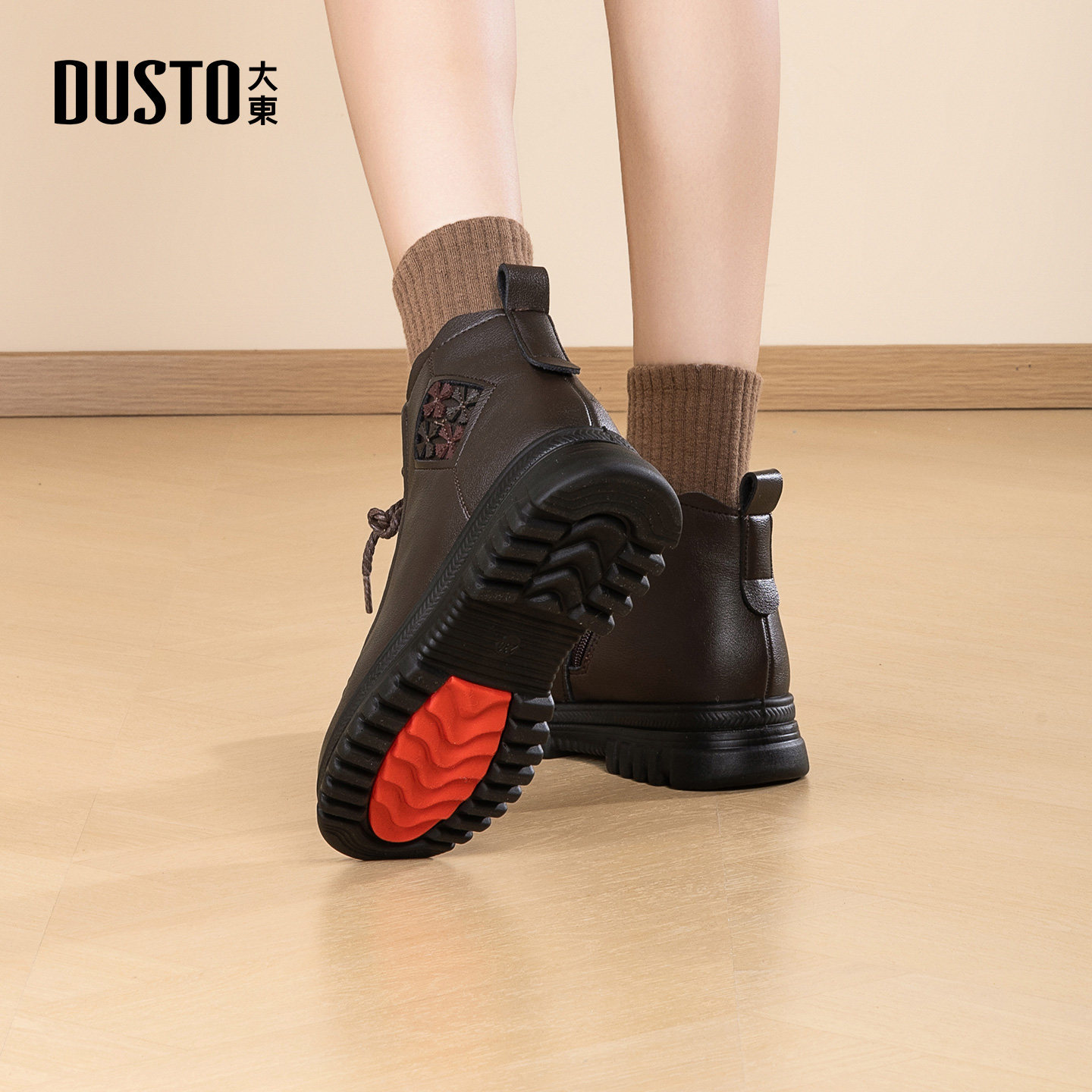 天猫大东女鞋妈妈鞋2025冬季新款加绒保暖侧拉链平底女短靴婆婆棉靴子