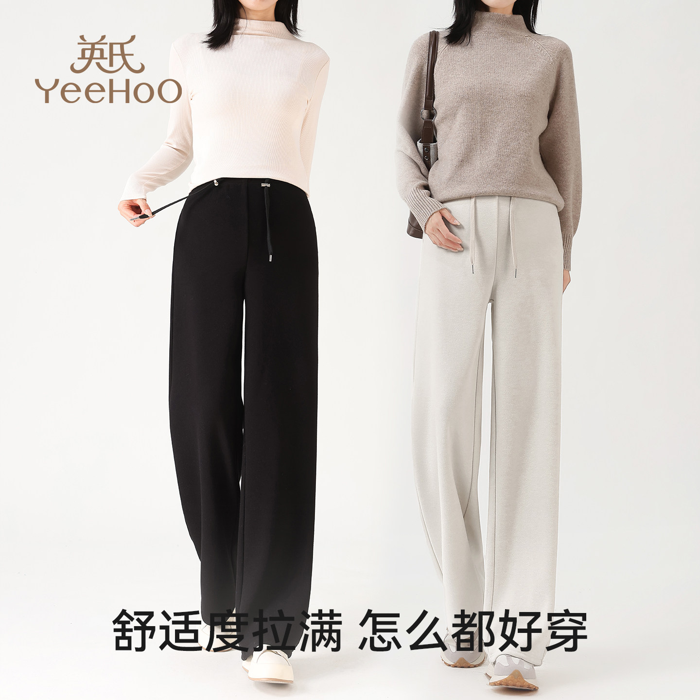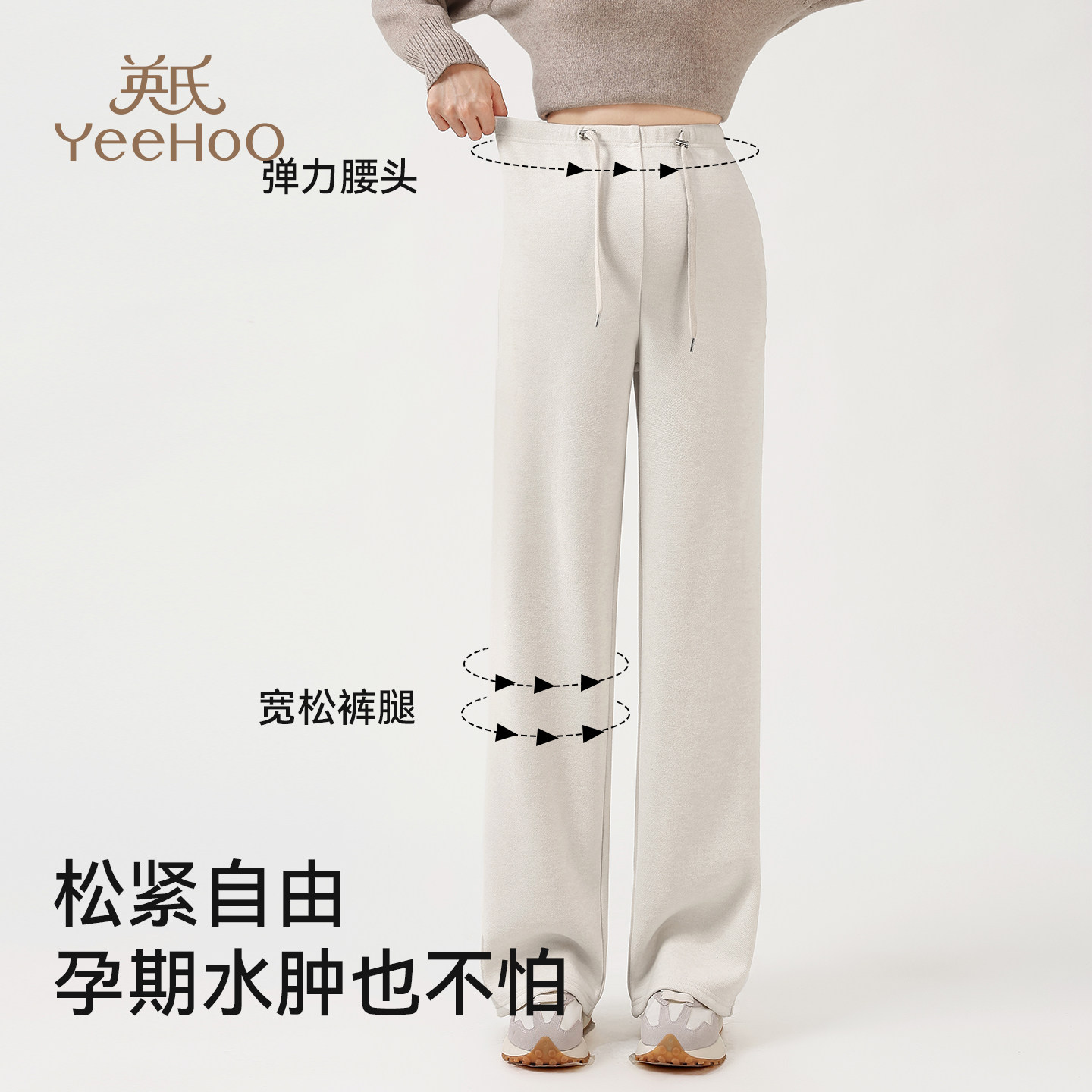 天猫英氏孕妇休闲裤新款外穿显瘦百搭直筒裤秋冬加厚宽松无托腹阔腿裤