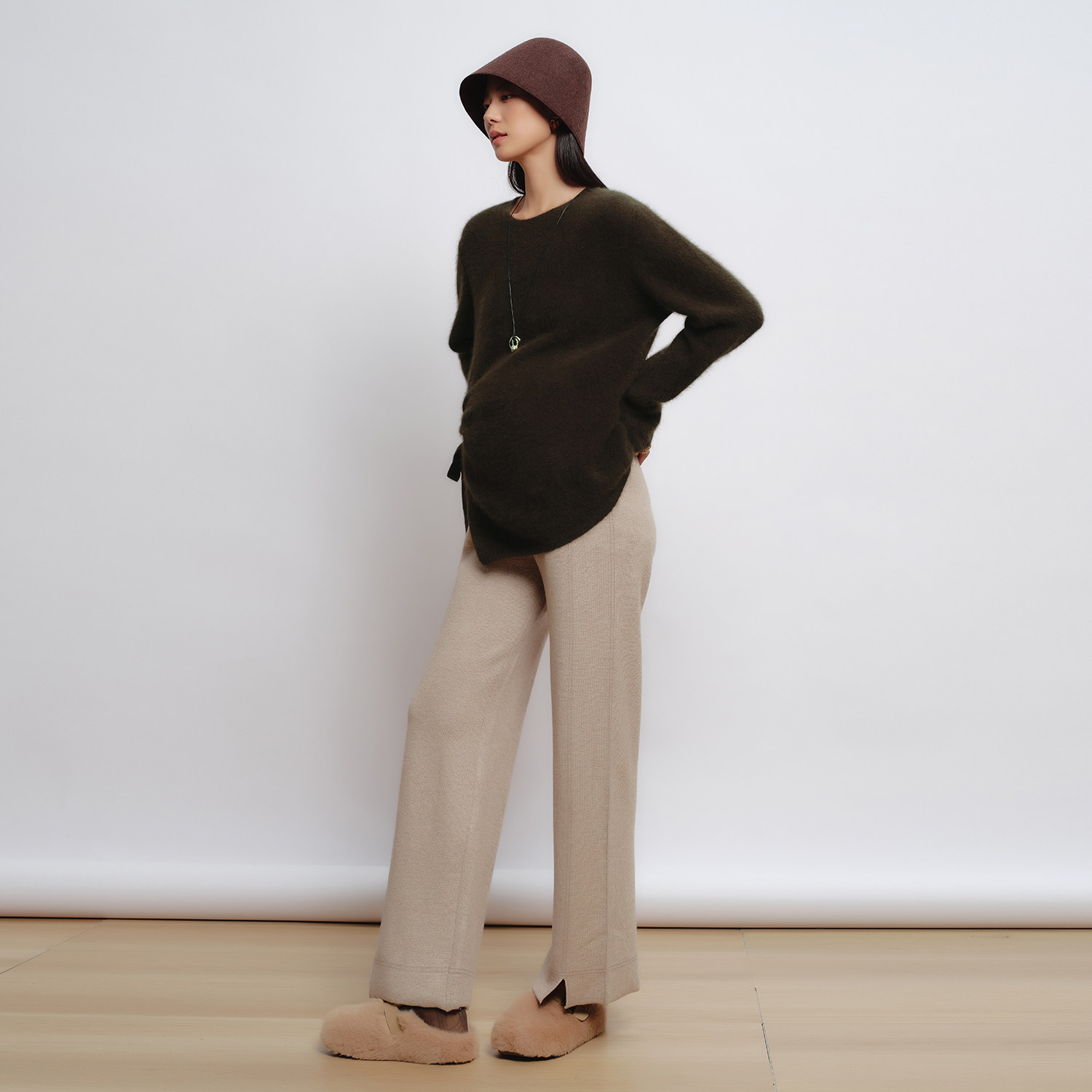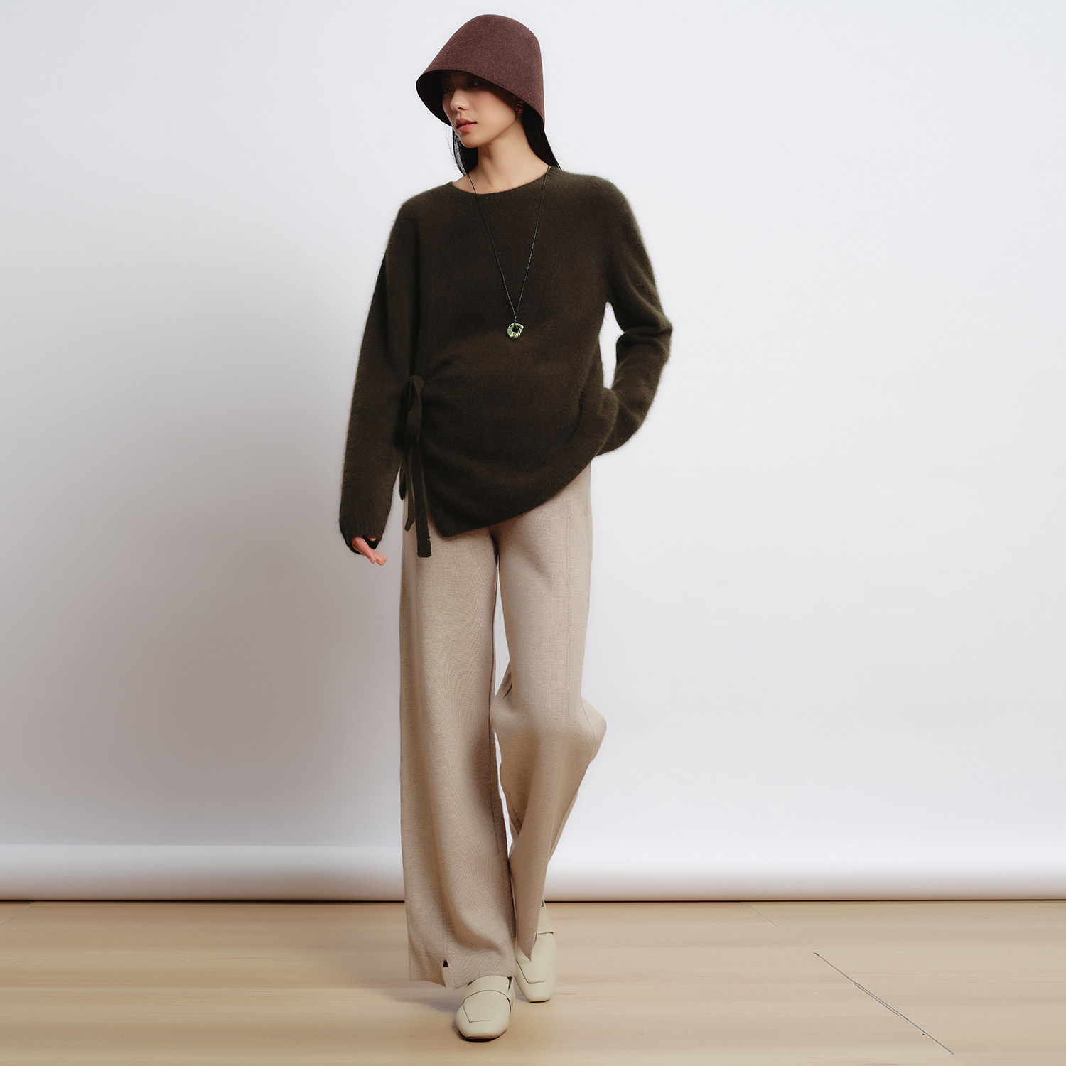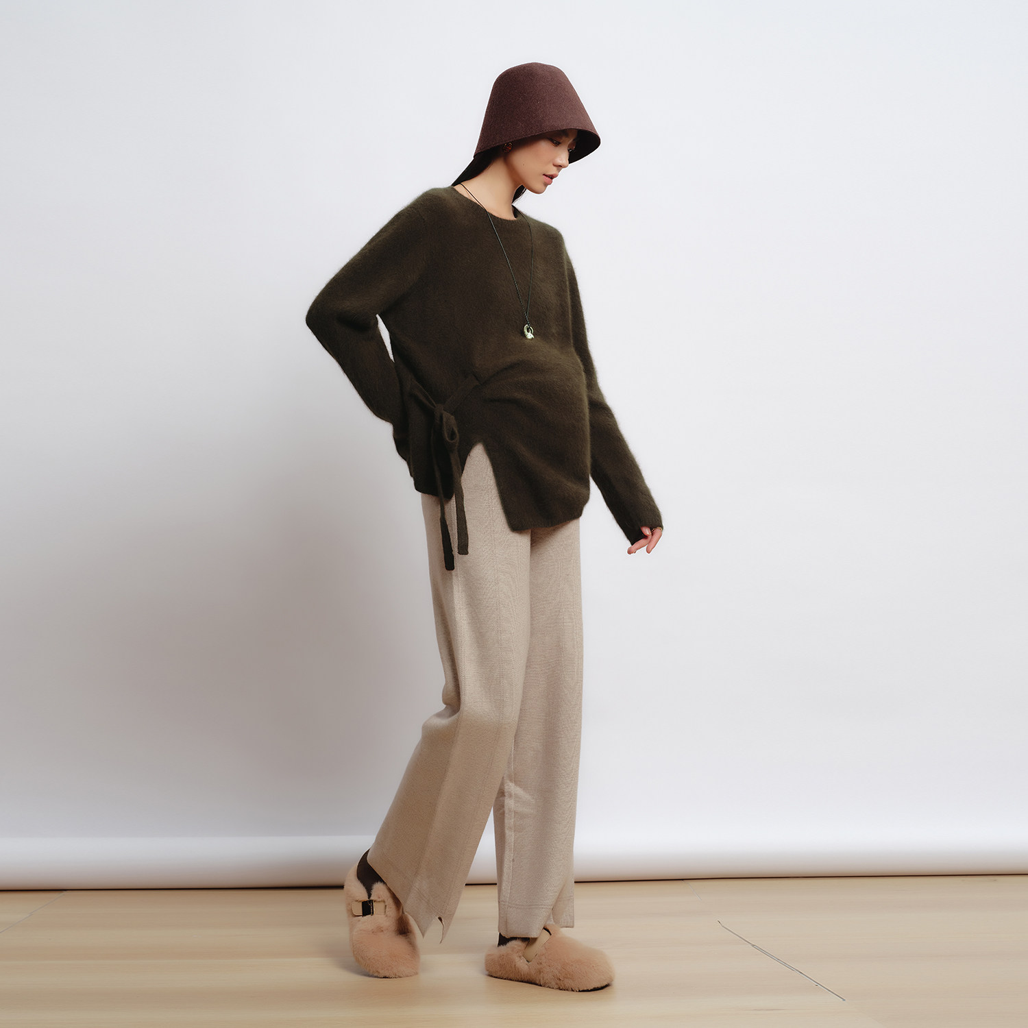 天猫SELLYNEAR孕妇裤2025新款冬时尚宽松高腰可调节无托腹毛织直筒裤