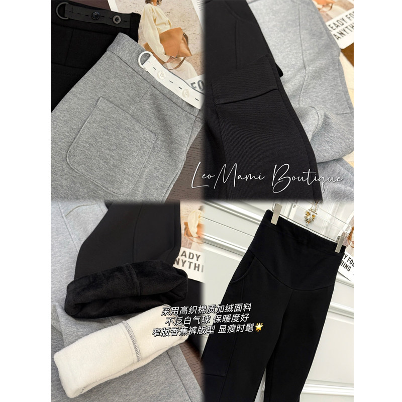 天孕妇裤春秋冬外穿阔腿打底裤猪鼻扣休闲托腹糯米加绒加厚长裤秋装