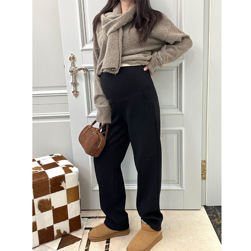 孕妇裤秋冬季加绒加厚2025新款羊羔绒直筒裤子时尚外穿春款阔腿裤