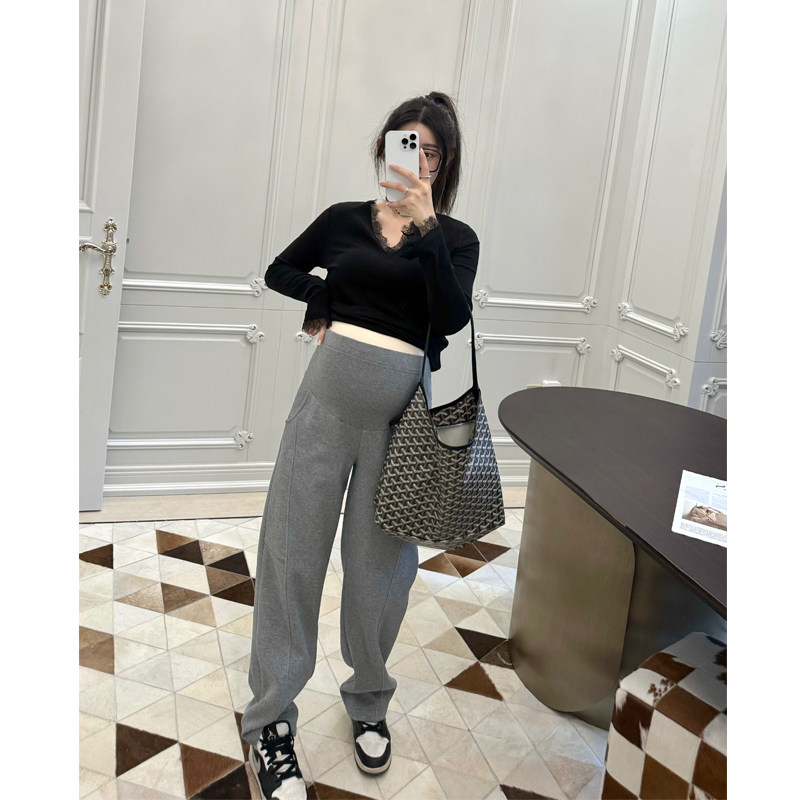 淘婧麒孕妇裤子秋冬外穿大码加绒阔腿裤2025新款不勒肚子长裤孕妇装