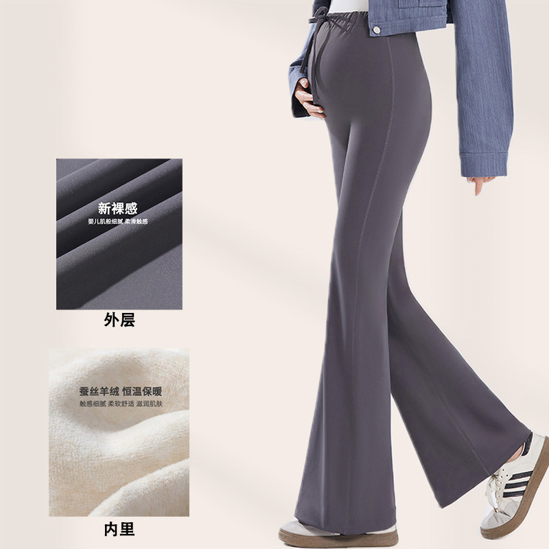 淘宝◆AMUM孕妇装◆加厚蚕丝羊绒高腰修身喇叭裤休闲百搭抽绳拖腹裤