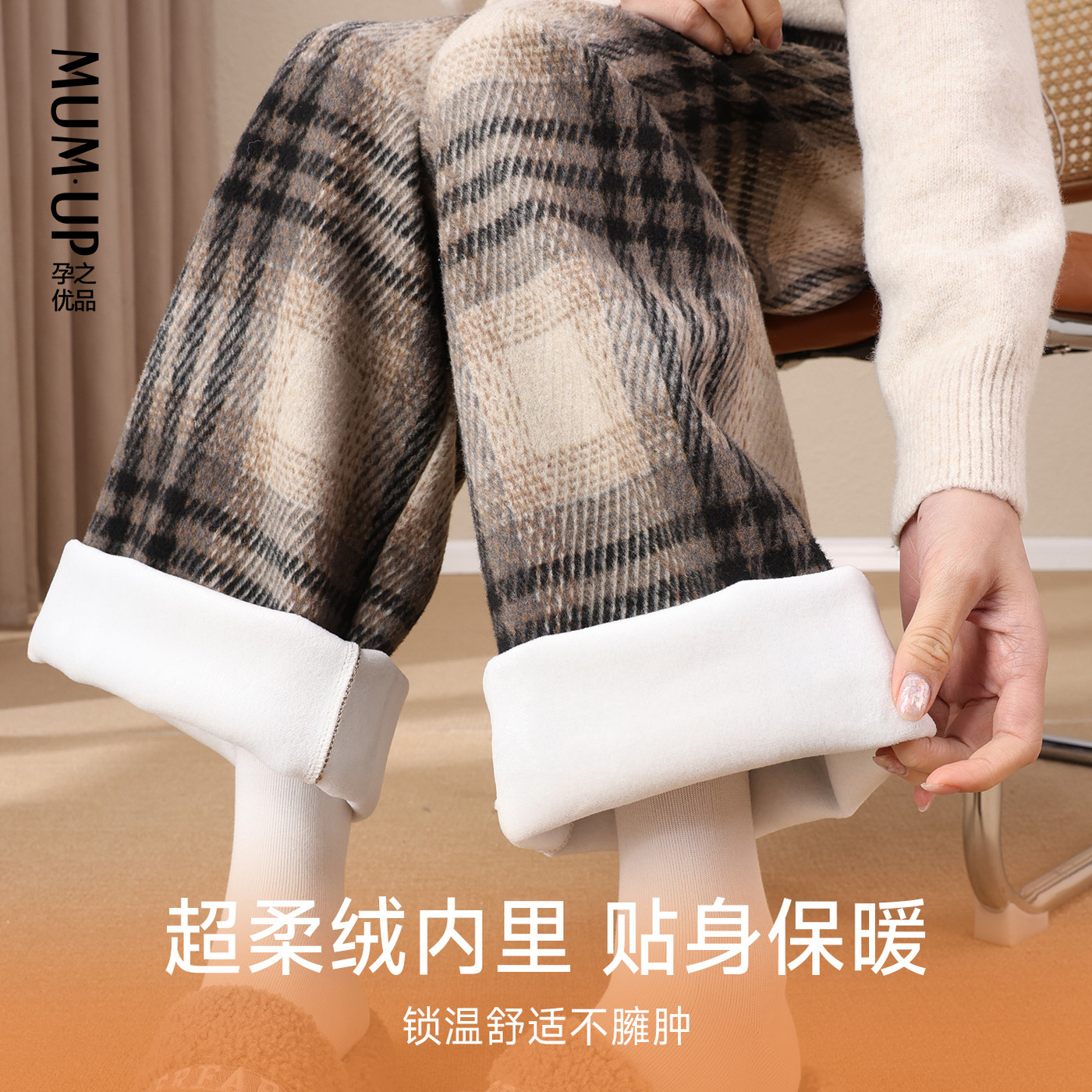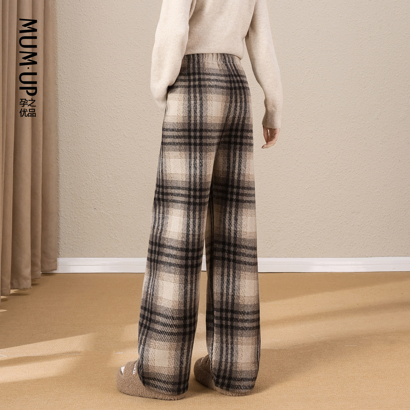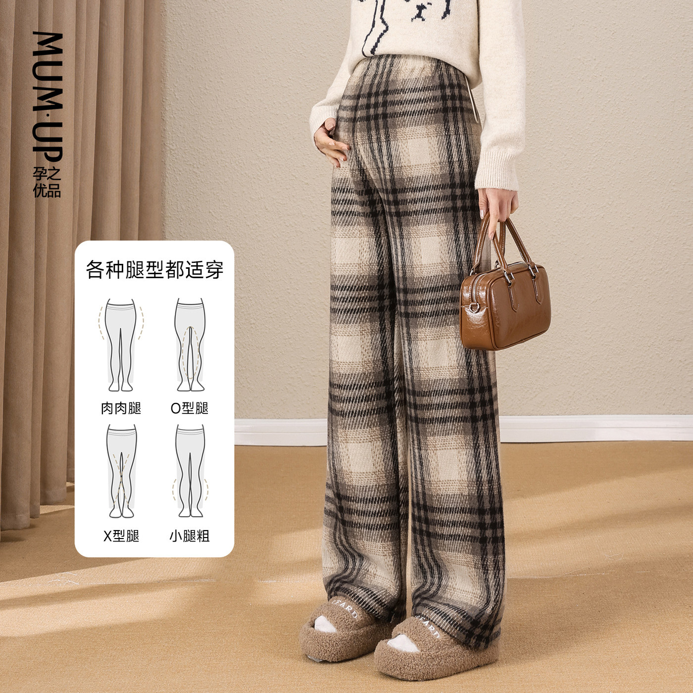 天猫【新品】孕妇复古格子裤秋冬加绒加厚毛呢阔腿裤显瘦保暖休闲裤子