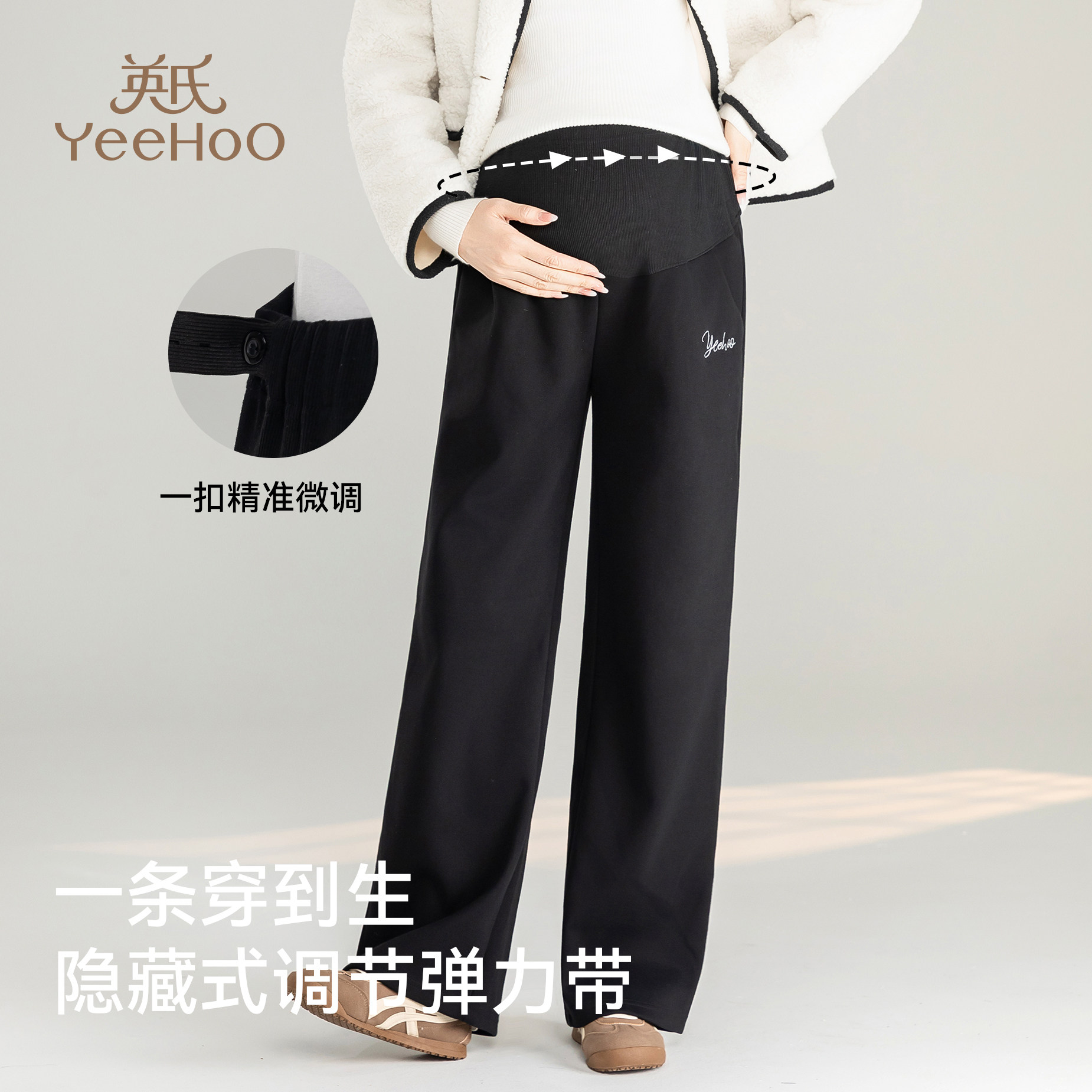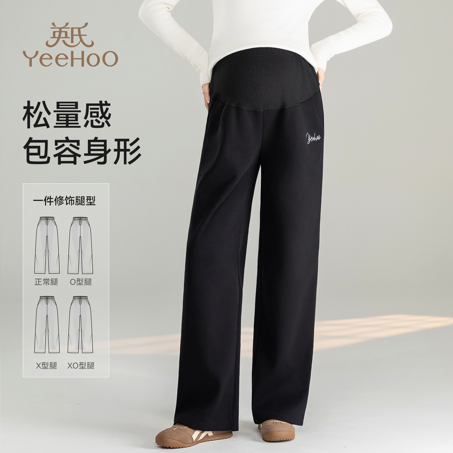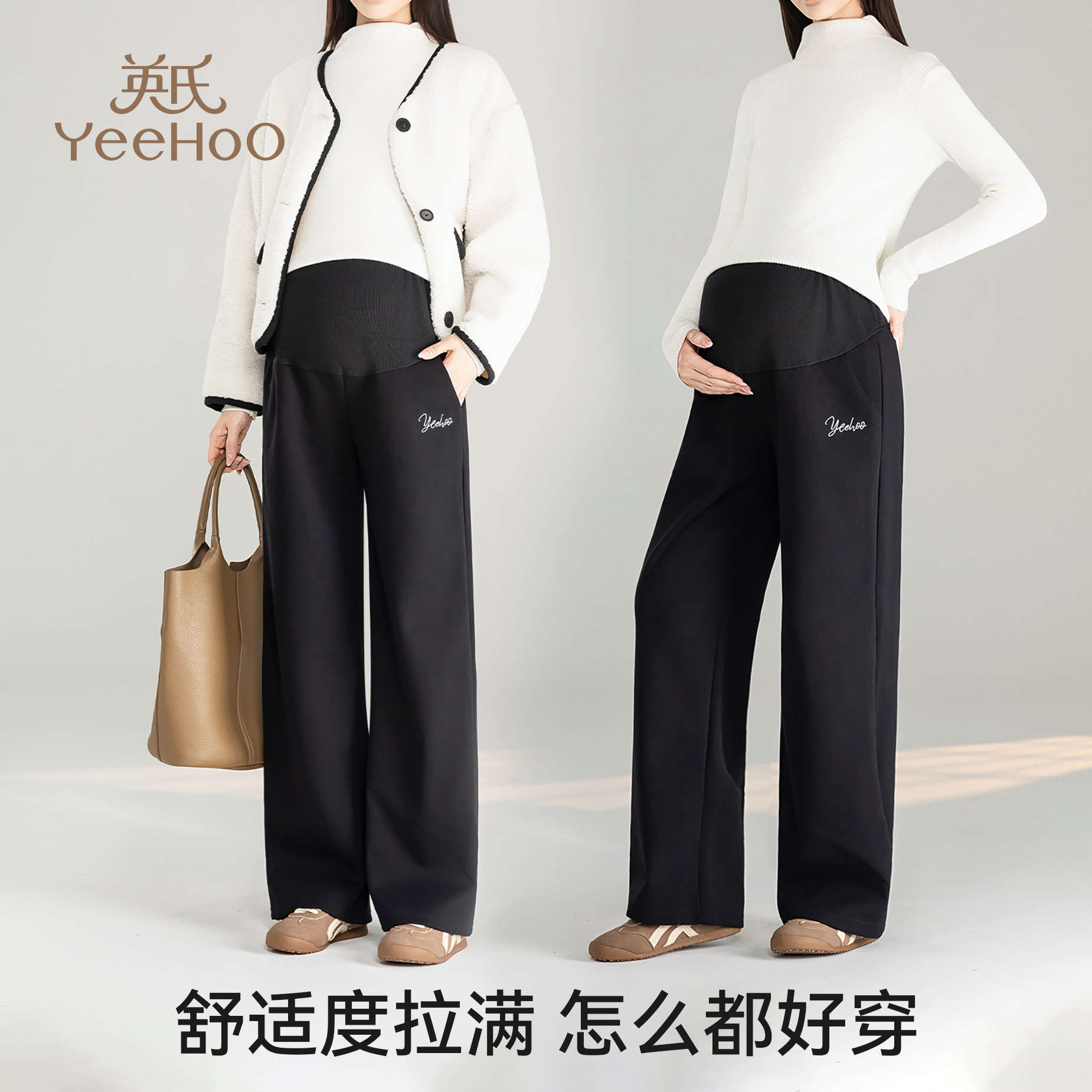 天猫英氏孕妇裤新款显瘦百搭阔腿裤冬季外穿加绒加厚托腹宽松休闲裤子