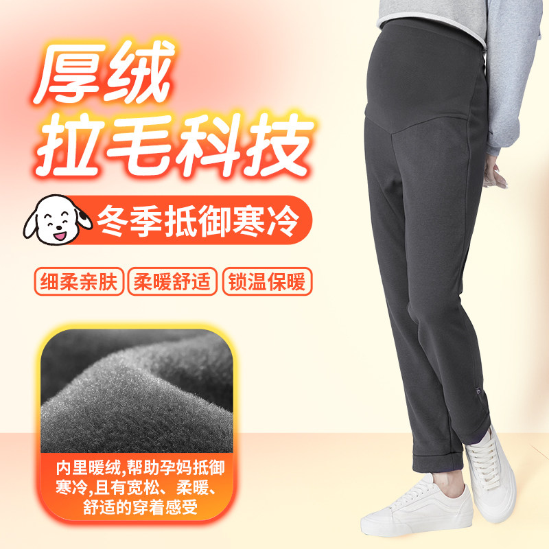 天猫犬印孕妇孕期厚绒拉毛秋冬季休闲外穿裤子轻松托腹阔腿保暖舒适