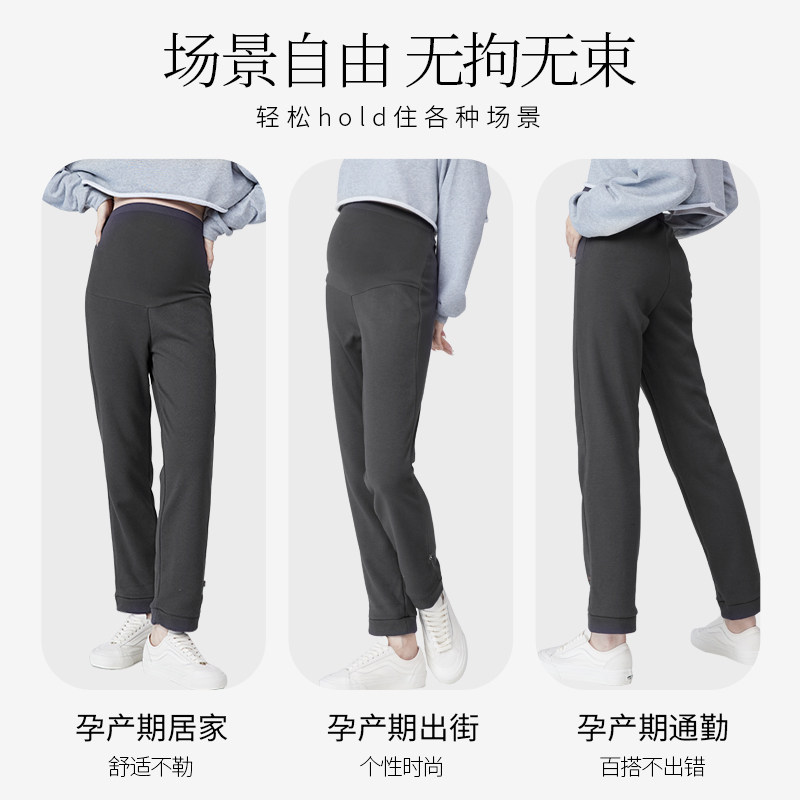 天孕妇裤春秋冬外穿阔腿打底裤猪鼻扣休闲托腹糯米加绒加厚长裤秋装