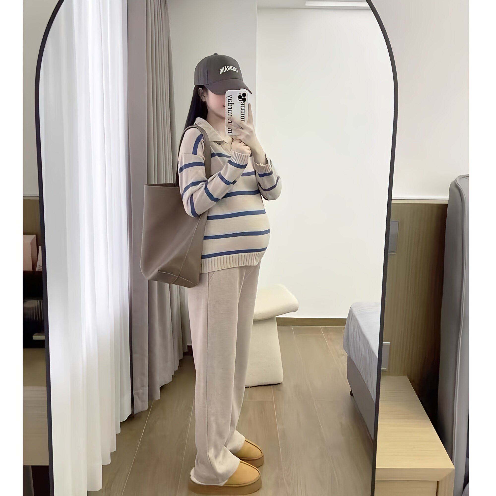 天孕妇裤子春秋季不勒肚子可调节2025新款加厚秋冬款宽松外穿阔腿裤