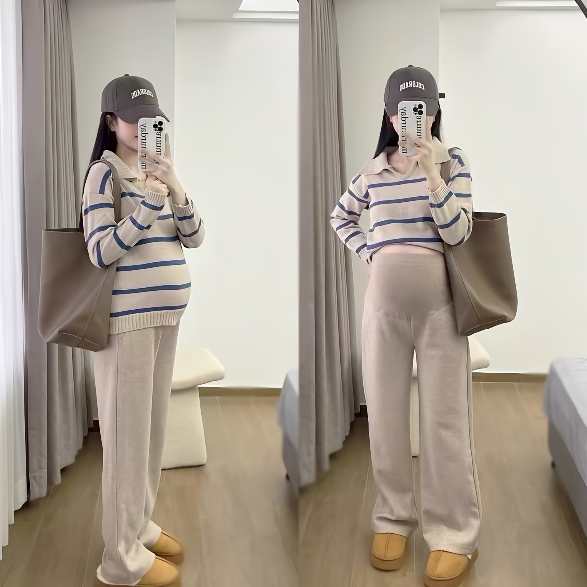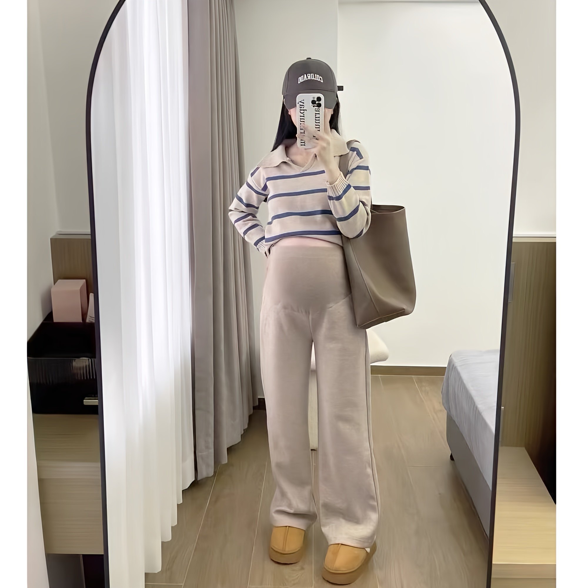 孕妇裤子春秋季不勒肚子可调节2025新款加厚秋冬款宽松外穿阔腿裤
