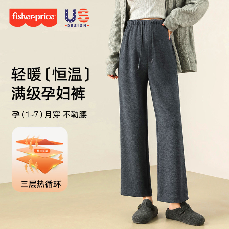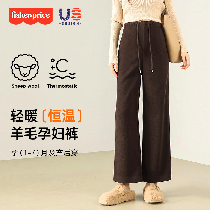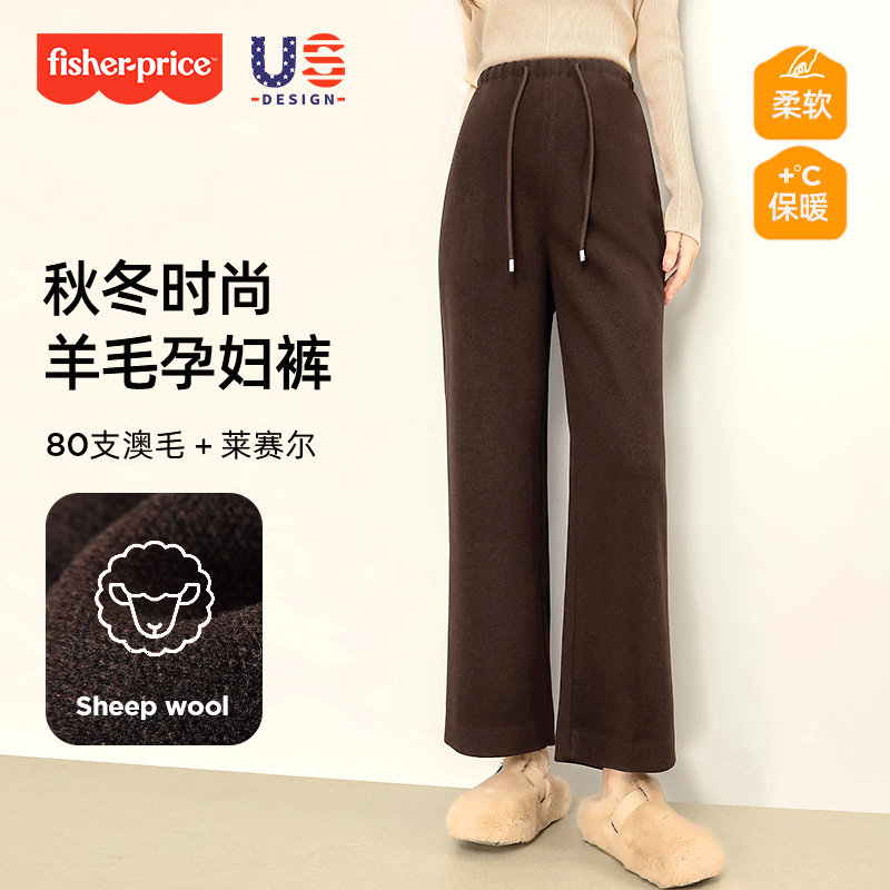 淘宝费雪羊毛孕妇裤子秋冬外穿新款加绒加厚长裤小个子不勒肚子直筒裤