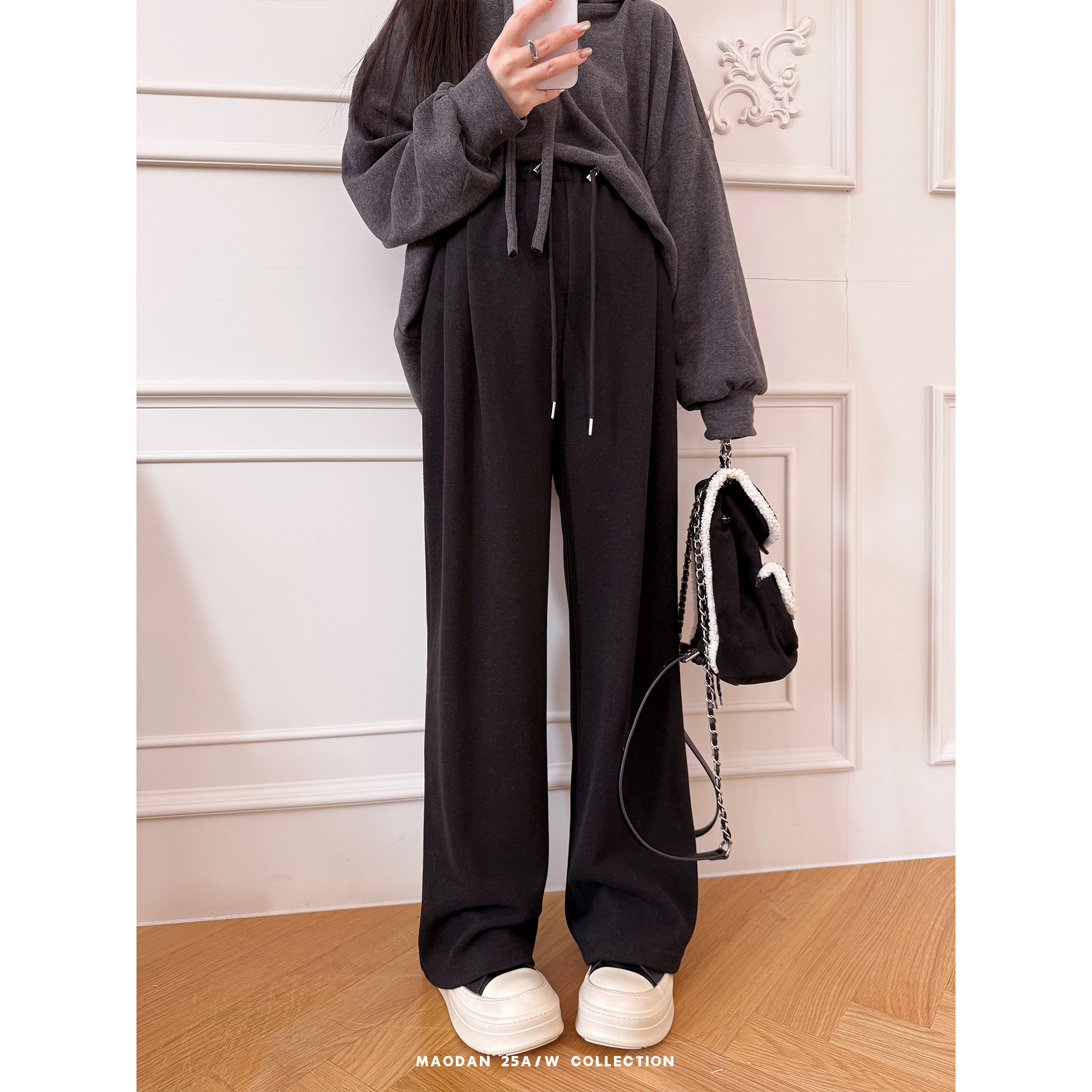 天猫人孕妇裤秋冬外穿阔腿裤2025新款束脚两穿加绒加厚休闲卫裤冬装