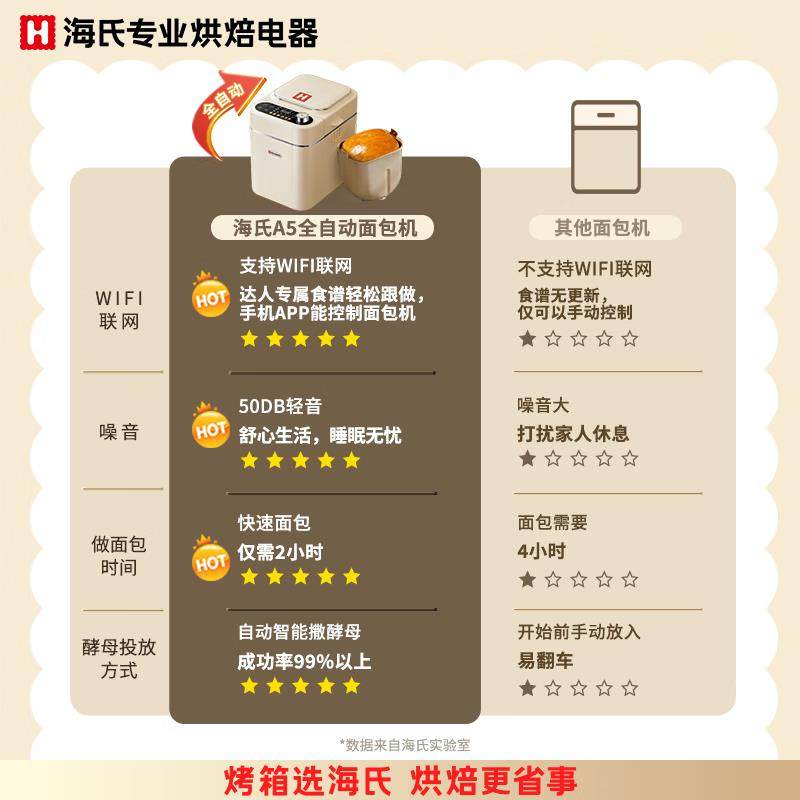 天猫海氏A5家用面包机全自动多功能智能揉面小型和面发酵早餐吐司机