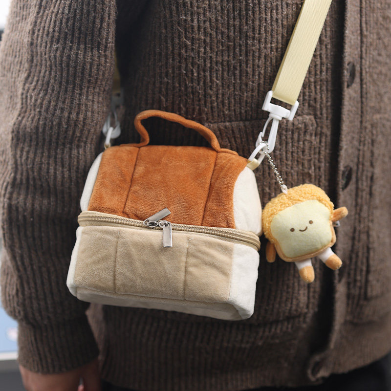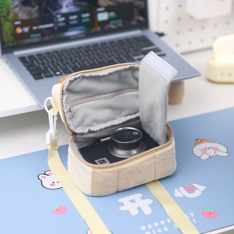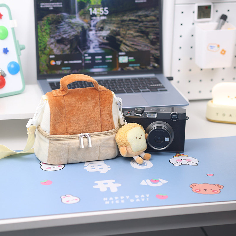 天猫柔软毛绒卡通相机包 适用于汉印Z3拍立得相机收纳包带肩带可斜挎单肩可爱萌系大容量吐司相机包搭配面包挂件