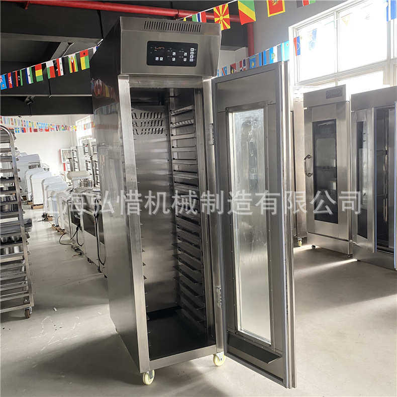 现货发酵箱是一款专为商用烘焙设计的全自动发面设备,集醒发、发酵、保温功能于一体,适用于面包、馒头、披萨、酸奶等多种食品制作。采用精准温控与湿度调节系统,确保面团均匀发酵,提升成品口感与蓬松度。全不锈钢内胆易清洁,耐用卫生,配备智能触控面板,操作简单,支持定时预约,大幅提升生产效率。无论是 bakery、餐厅还是食品加工厂,都能稳定运行,满足大批量制作需求。现货供应,即买即用,是提升烘焙品质与效率的理想之选。