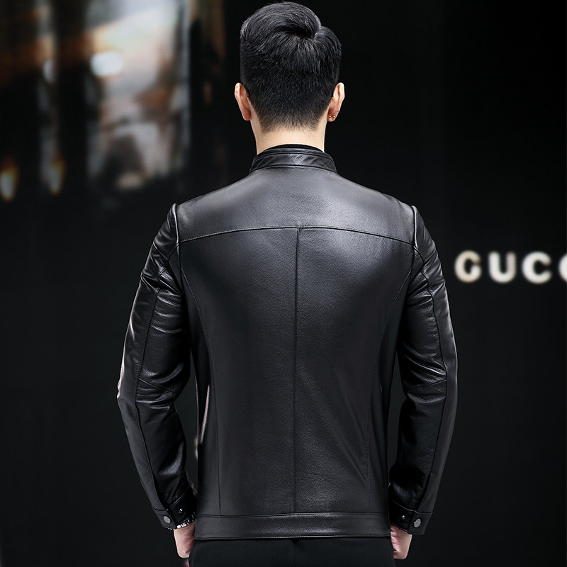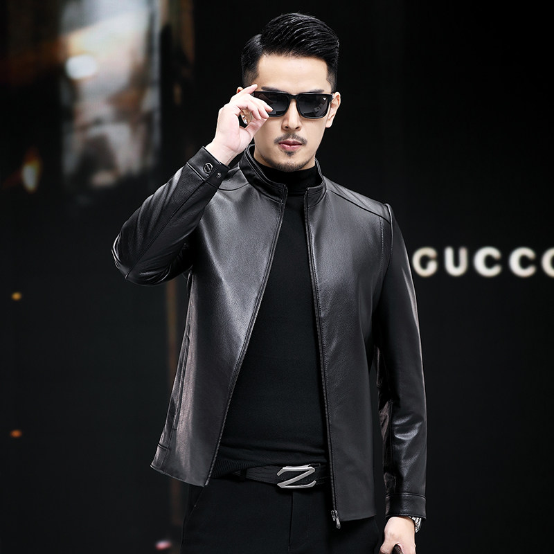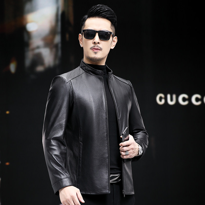 海宁真皮皮衣小牛皮立领夹克,精选优质头层小牛皮,皮质柔软细腻,光泽自然,彰显高端品质。立领设计简约利落,兼具防风与时尚感,适合多种场合穿着。黑色经典百搭,轻松驾驭上班通勤、商务洽谈或日常休闲,展现男士沉稳干练气质。立体剪裁贴合身形,活动自如,细节做工精湛,拉链顺滑耐用。无论是搭配衬衫、毛衣还是T恤,都能轻松打造型男风范。这款真皮夹克不仅保暖舒适,更凸显品味与格调,是现代都市男性衣橱中的必备单品,演绎低调奢华的时尚魅力。