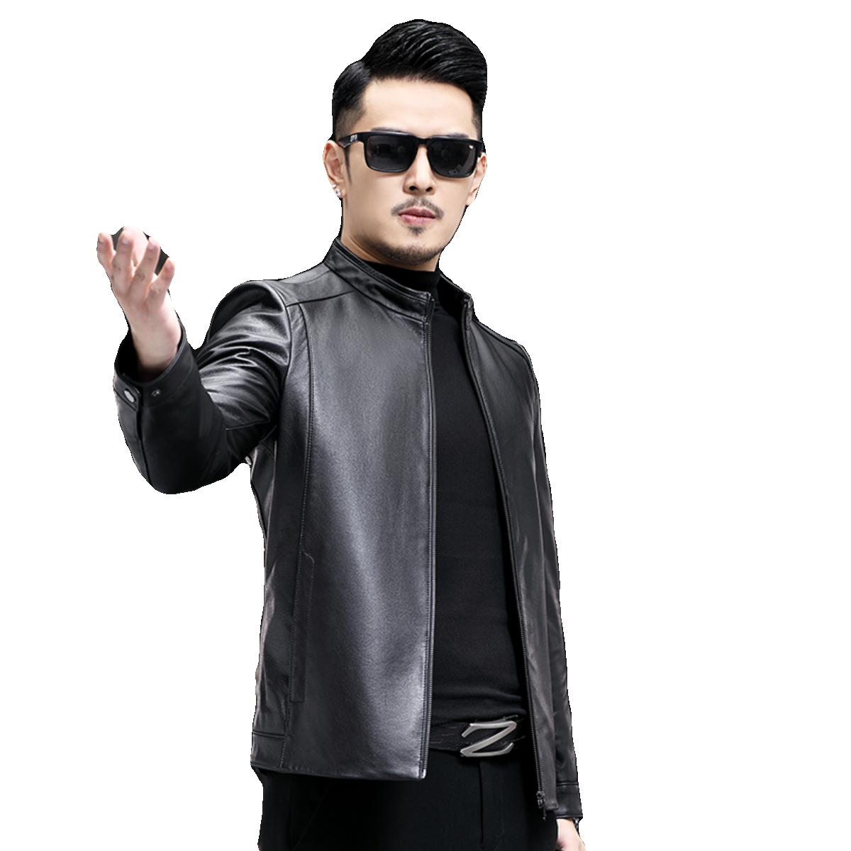 淘宝海宁真皮皮衣小牛皮立领夹克男装上班休闲商务黑色时尚夹克外套